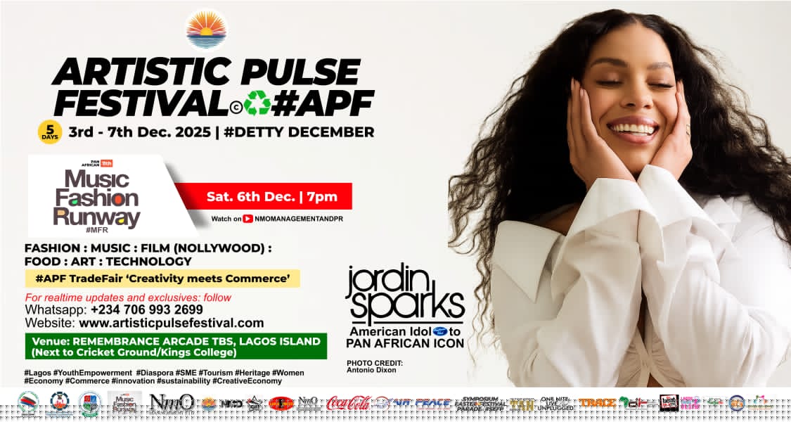NMO Management and PR proudly announces the inaugural Artistic Pulse Festival (#APF), Africa’s first sustainable recycling festival, taking place from December 3 to 7, 2025, at the historic Remembrance Arcade, Tafawa Balewa Square (TBS).