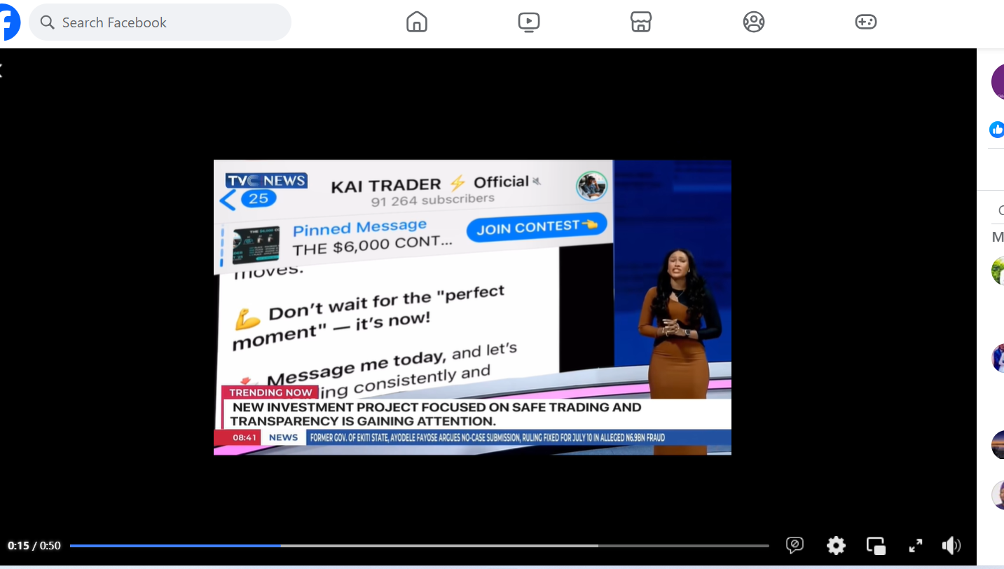 Some weeks after the collapse of CBEX, a Facebook video ad spotted by The ICIR in May (archived here) showed a TVC News anchor endorsing a trading platform, Kai Traders, while using the CBEX platform that had already collapsed months earlier, as an example of why people should trust Kai Traders.