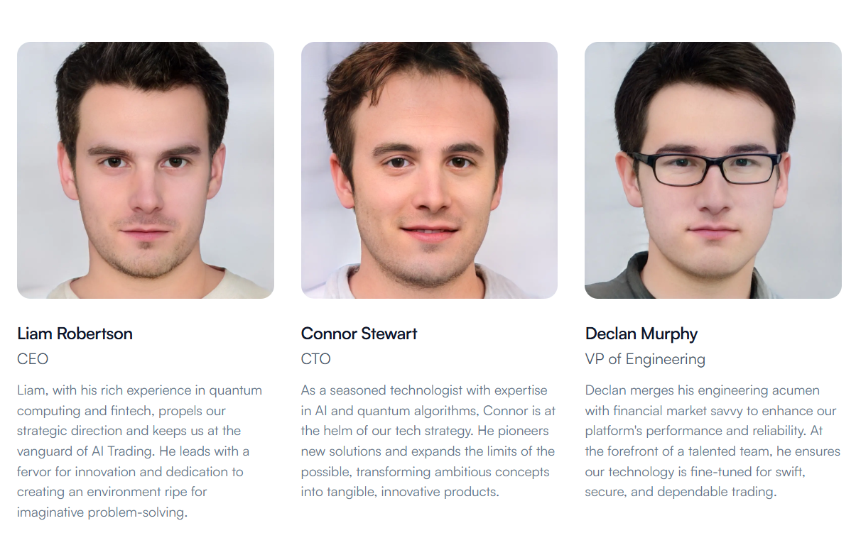 However, the biggest scandal that would turn out is that all members of the team listed on its websites are not real humans. The names, profiles and headshots plastered on the website were AI-generated. This includes the Chief Executive Officer (CEO), Liam Robertson; Chief Technical Officer (CTO), Connor Stewart; and Vice President of Engineering, Declan Murphy.
