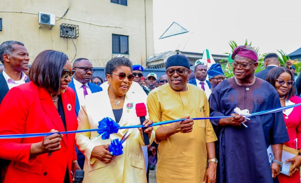 Ajibola Basiru (extreme right) with Fubara (next to him) at the project inauguration in Obio/Akpor LGA of Rivers