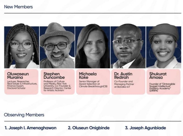 Other members are Stephen Duncombe, a professor; Michaela Koke, senior manager (award selection) at Climate Breakthrough; Austin Ifedirah, co-founder and managing partner of Bandika loT; and Shukurat Amosa, founder of Dintangible Nugget Intellectual Property Academy (DINIPA).