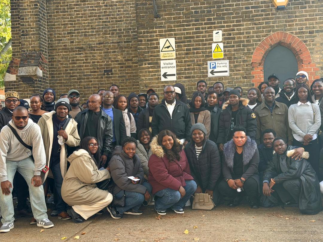 Otuaro (middle) in a group photograph with the PAP foreign scholarship students in the United Kingdom after an interactive session in London on Saturday, 25 October, 2025.