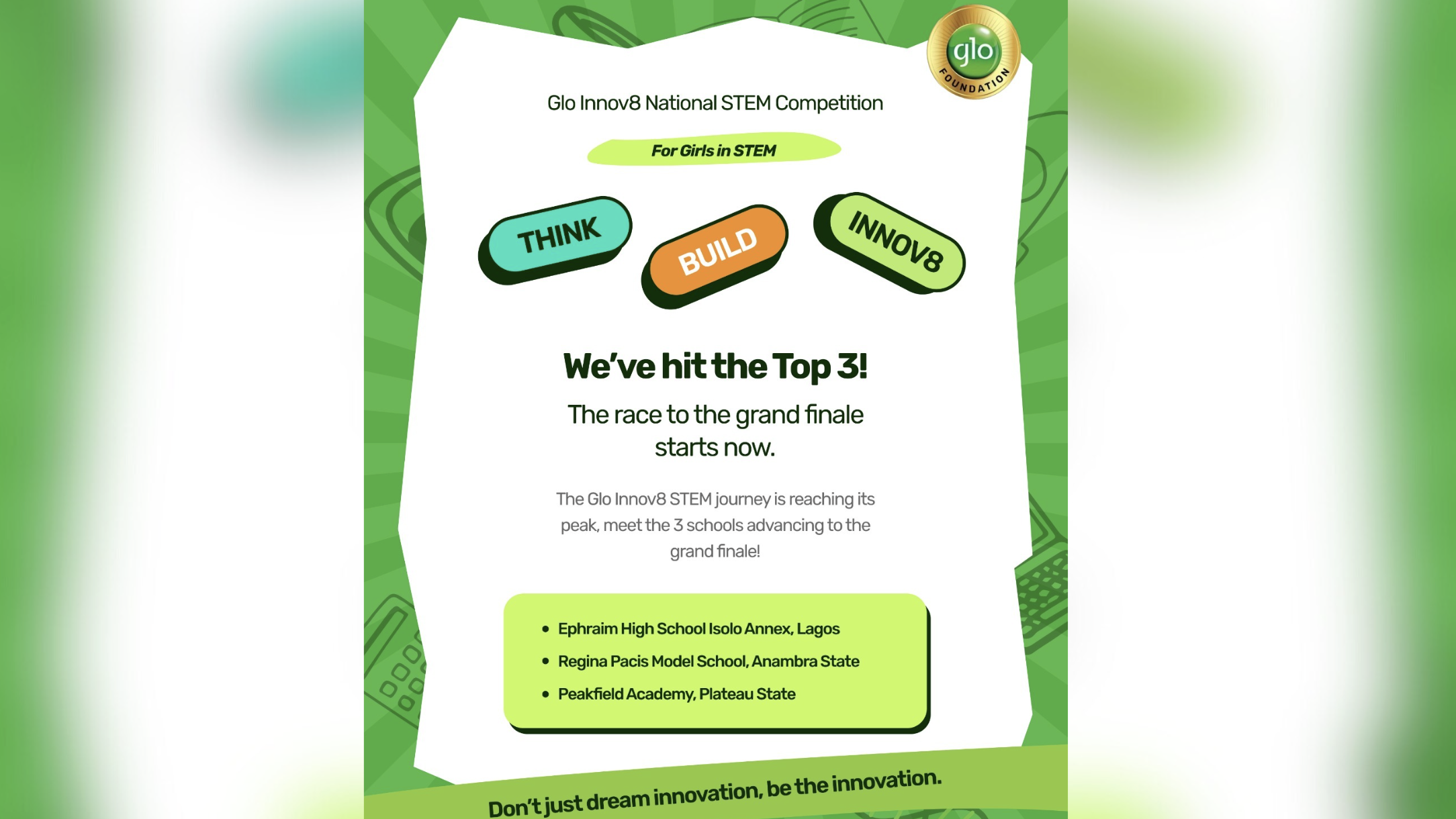 The curtains are gradually falling on Globacom’s “Glo Innov8” National STEM competition for girls in Senior Secondary Schools across the country as the three top finalists have emerged for the final event to be held at the Mike Adenuga Centre (Alliance Francais), Ikoyi, Lagos.