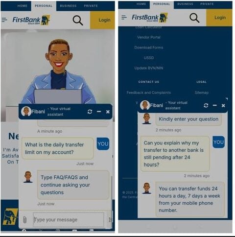 To assess these concerns, TheCable tested the virtual assistants of four leading banks, including FirstBank (Fibani), UBA (Leo), Zenith Bank (Ziva), and Access Bank (Tamada). The goal was to determine whether these chatbots could handle inquiries beyond their pre-programmed scripts and track how well they responded.