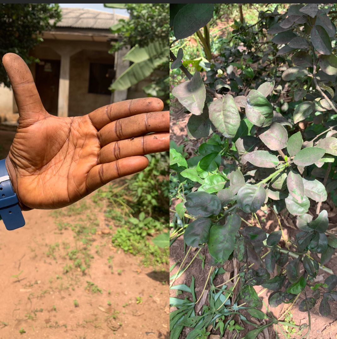 In one small-scale farm that shares a fence with True Metals, PREMIUM TIMES reporters observed blackened leaves, a sign of prolonged exposure to dust and fumes drifting from the recycling plant. The surfaces of houses and rooftops have been blackened over the years from the lead dust emitted by the company.