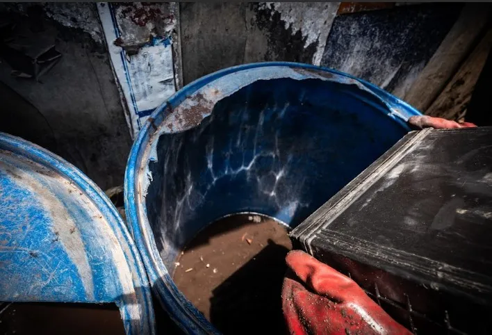 When the molten mixture cools, it solidifies into crude lead. The lead is then transferred to the refinery section, where it is purified and prepared for export. Throughout the process, workers are exposed to heat, fumes, and acid residue, often without adequate protective gear.