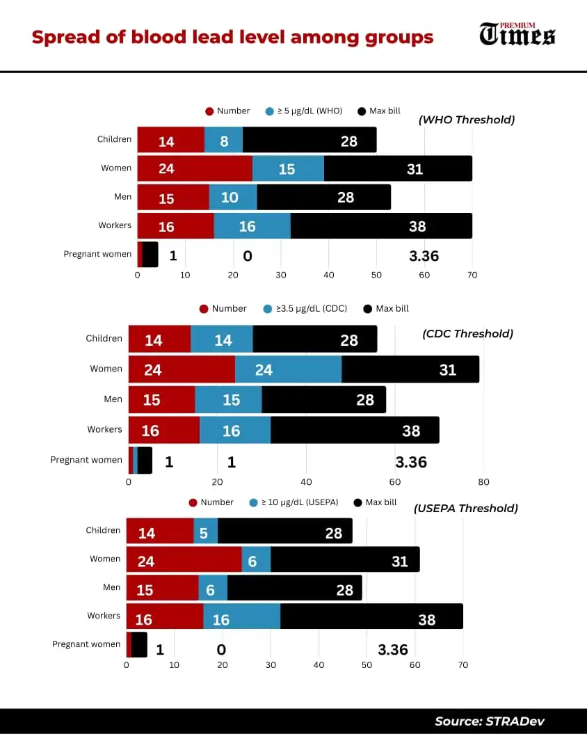 Nasir Tsafe, a member of the rapid response team for lead poisoning in Zamfara State and coordinator of the Centre for Lead Poisoning Control and Prevention at King Fahd Abdul Aziz Children and Women Hospital, told The Examination, PREMIUM TIMES and partners that exposure above 3.5 micrograms per deciliter is dangerous.