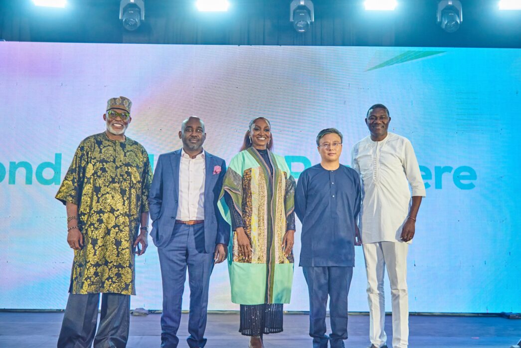 L-R- Nollywood Actor, Richard Mofe-Damijo; Group Chief Executive Officer, Lafarge Africa Plc, Lolu Alade-Akinyemi; Nollywood Actress, Kate Henshaw; Chief Finance Officer, Lafarge Africa Plc, Zhigang Ke, and Commercial Director, Lafarge Africa Plc, Gbenga Onimowo, during the premiere of a thematic campaign, “Beyond Building” in Lagos, Nigeria