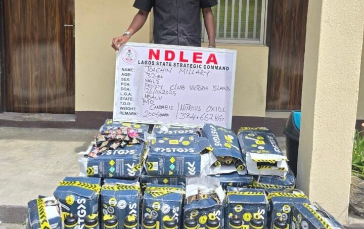 The warning follows a weekend raid on Proxy Night Club, located on Akin Adesola street, Victoria Island, Lagos, where operatives arrested over 100 attendees and “seized 384.882 kilograms of Canadian Loud”, a potent strain of cannabis, alongside other illicit substances.