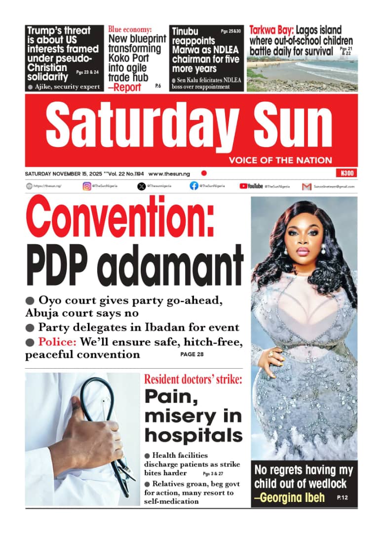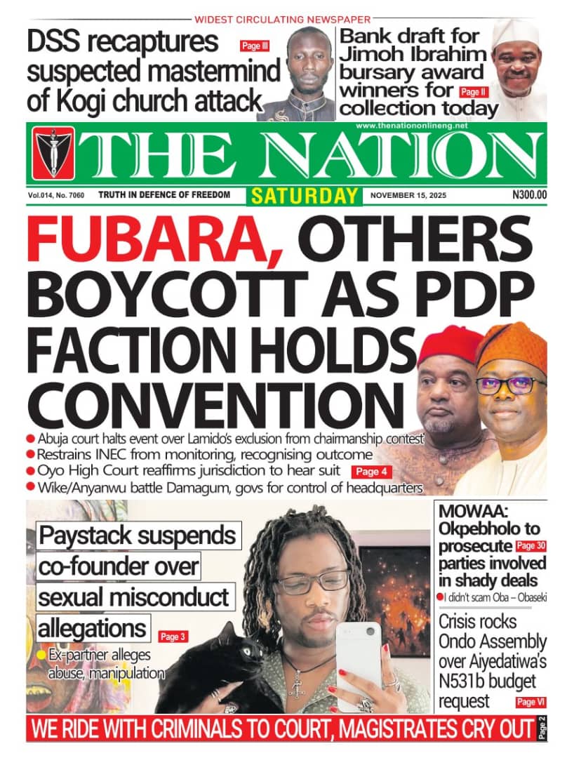 The controversies surrounding the Peoples Democratic Party (PDP) national convention in Ibadan, Oyo state capital, dominate the front pages today.