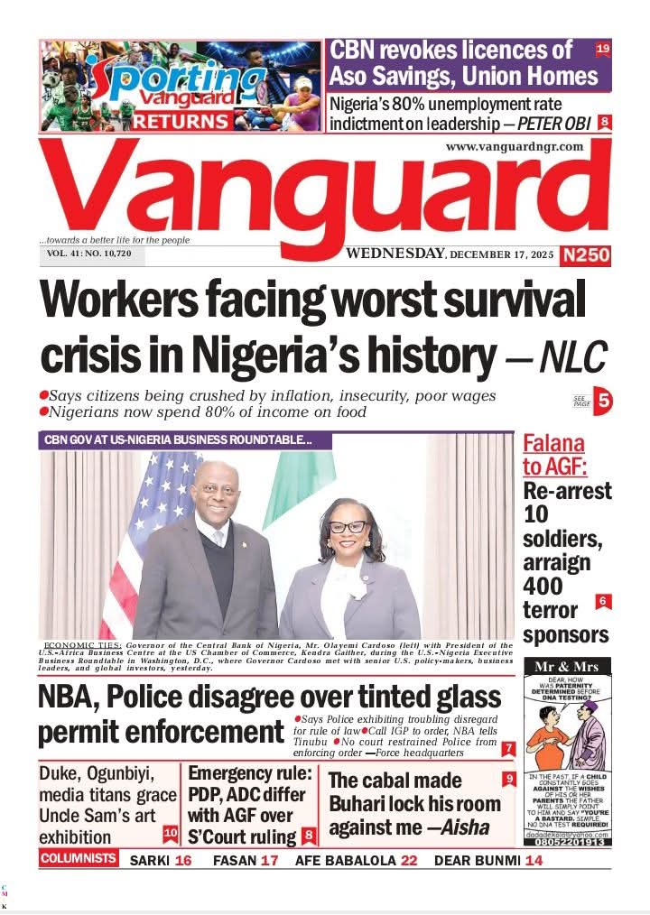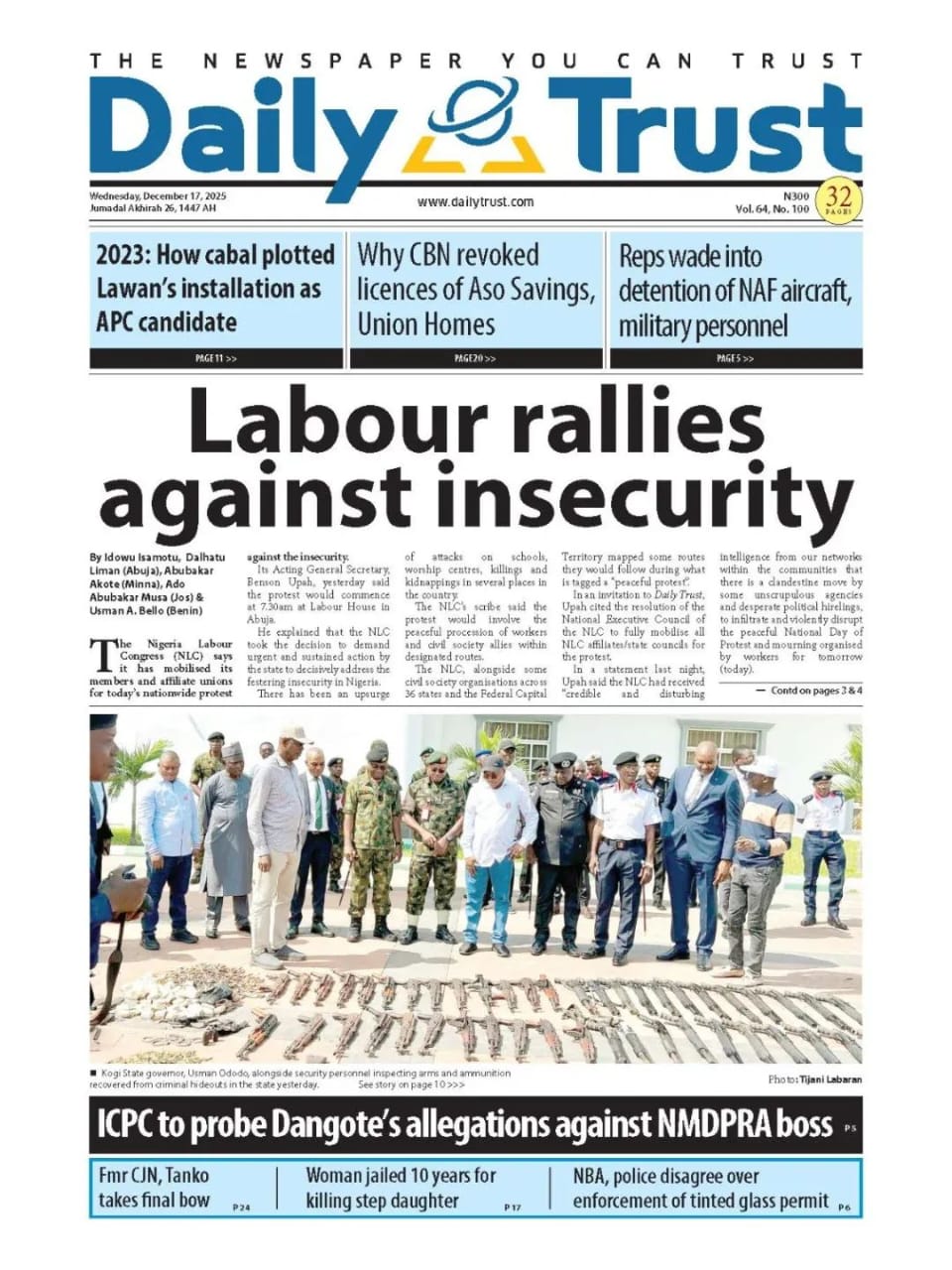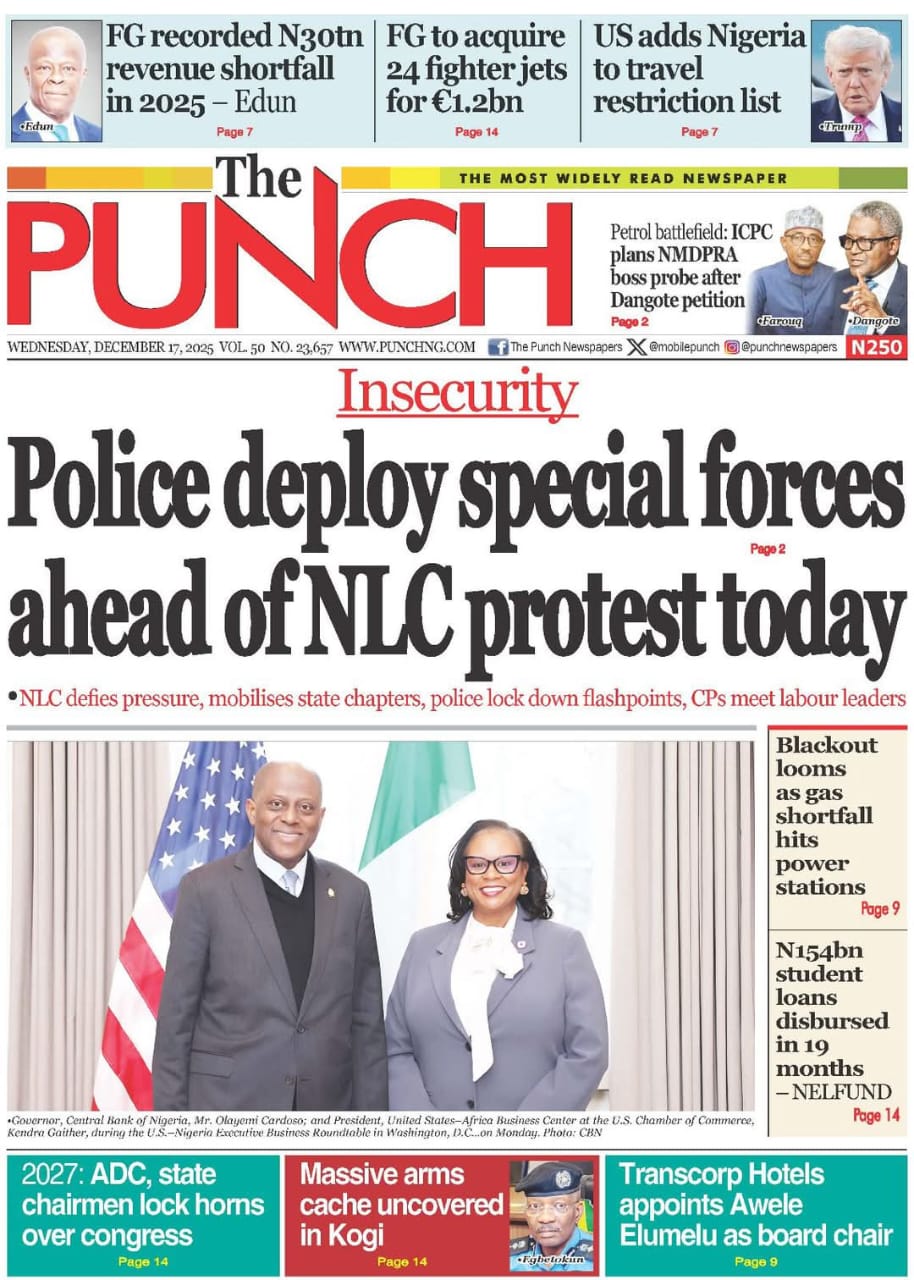 Reports on the planned nationwide protests over insecurity and the lingering dispute between Aliko Dangote and Ahmed Farouk, chief executive officer (CEO) of the Nigerian Midstream and Downstream Petroleum Regulatory Authority (NMDPRA), dominate the frontpages.