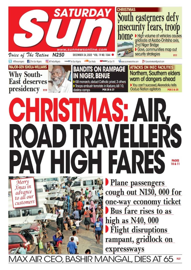 Stories of bandit attacks in Kaduna, Benue and Niger states dominate the national dailies.