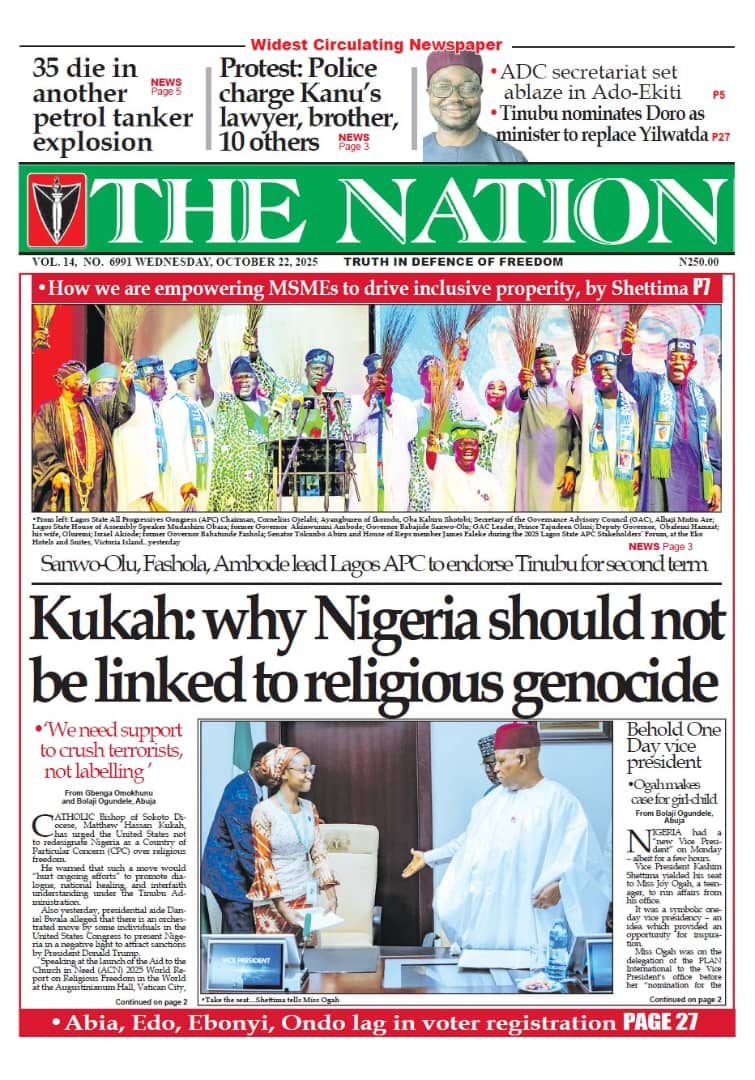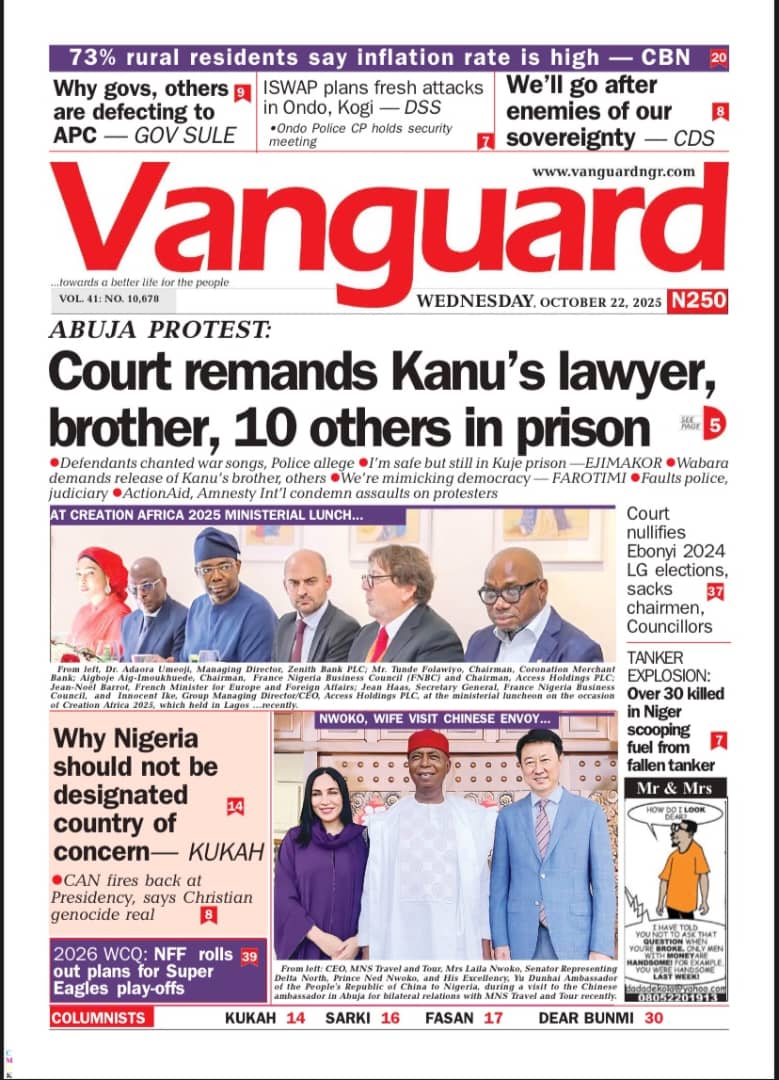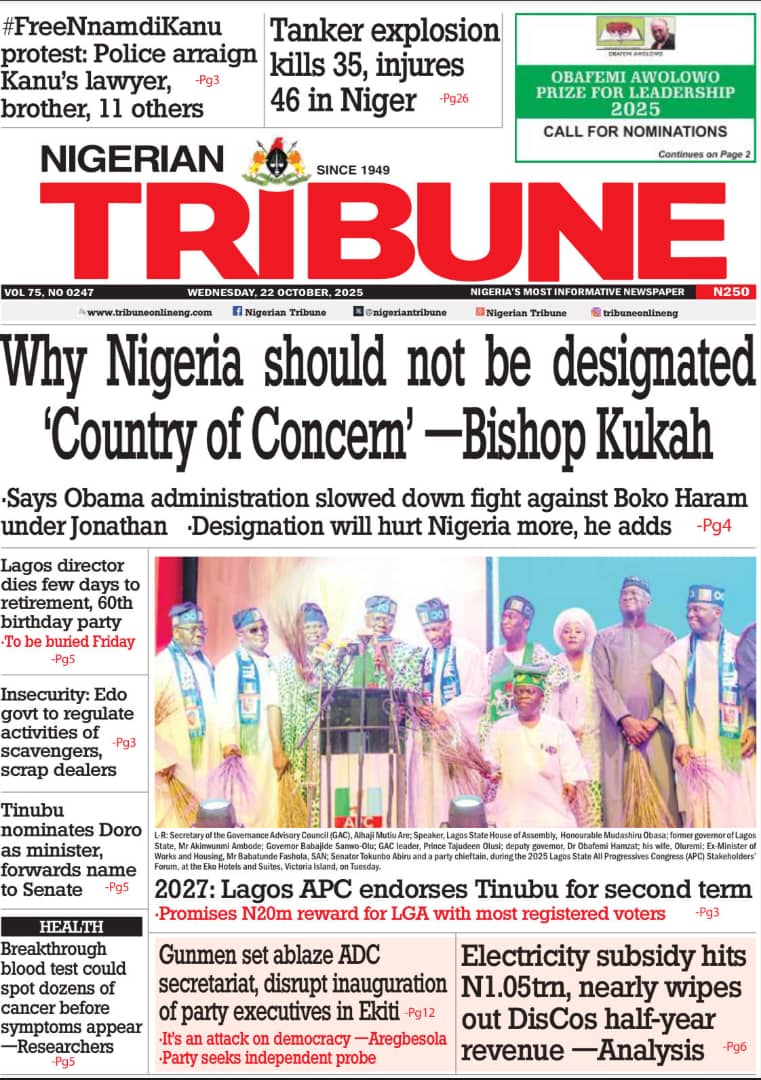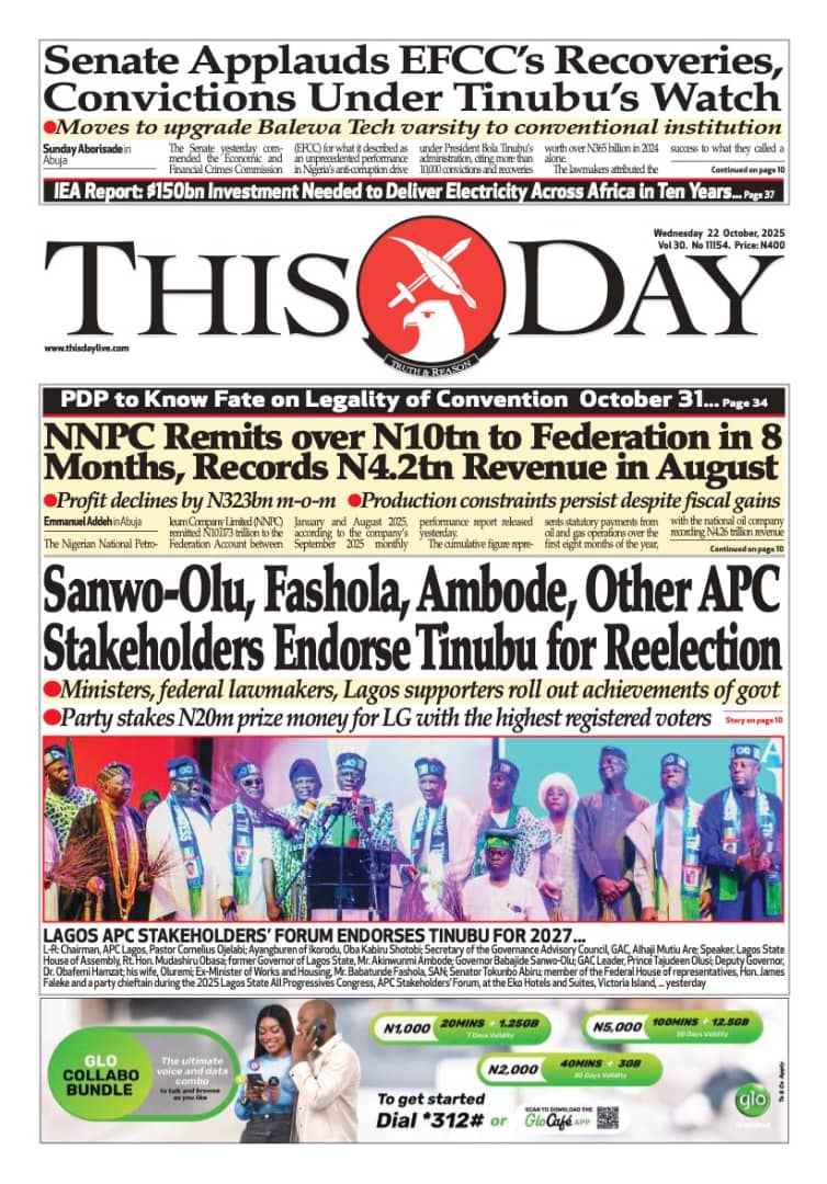 Reports on a petrol tanker explosion in Niger state that claimed many lives, and developments in the upper legislative chamber, dominate the cover pages.