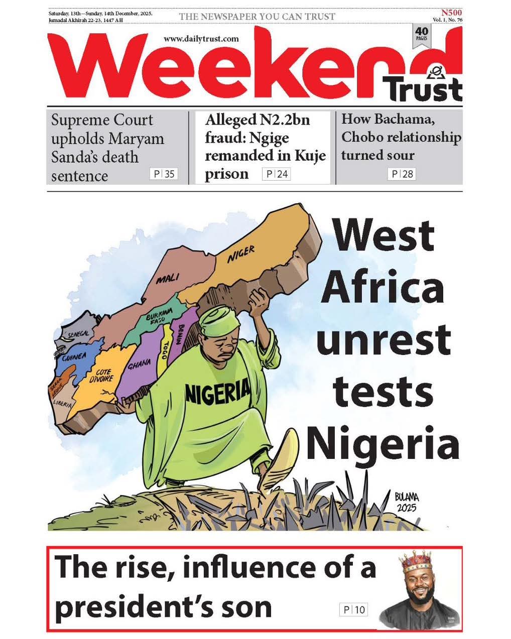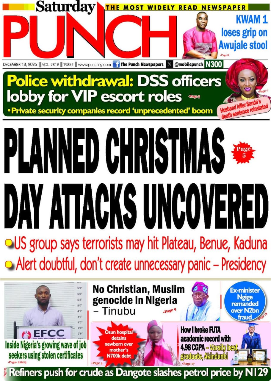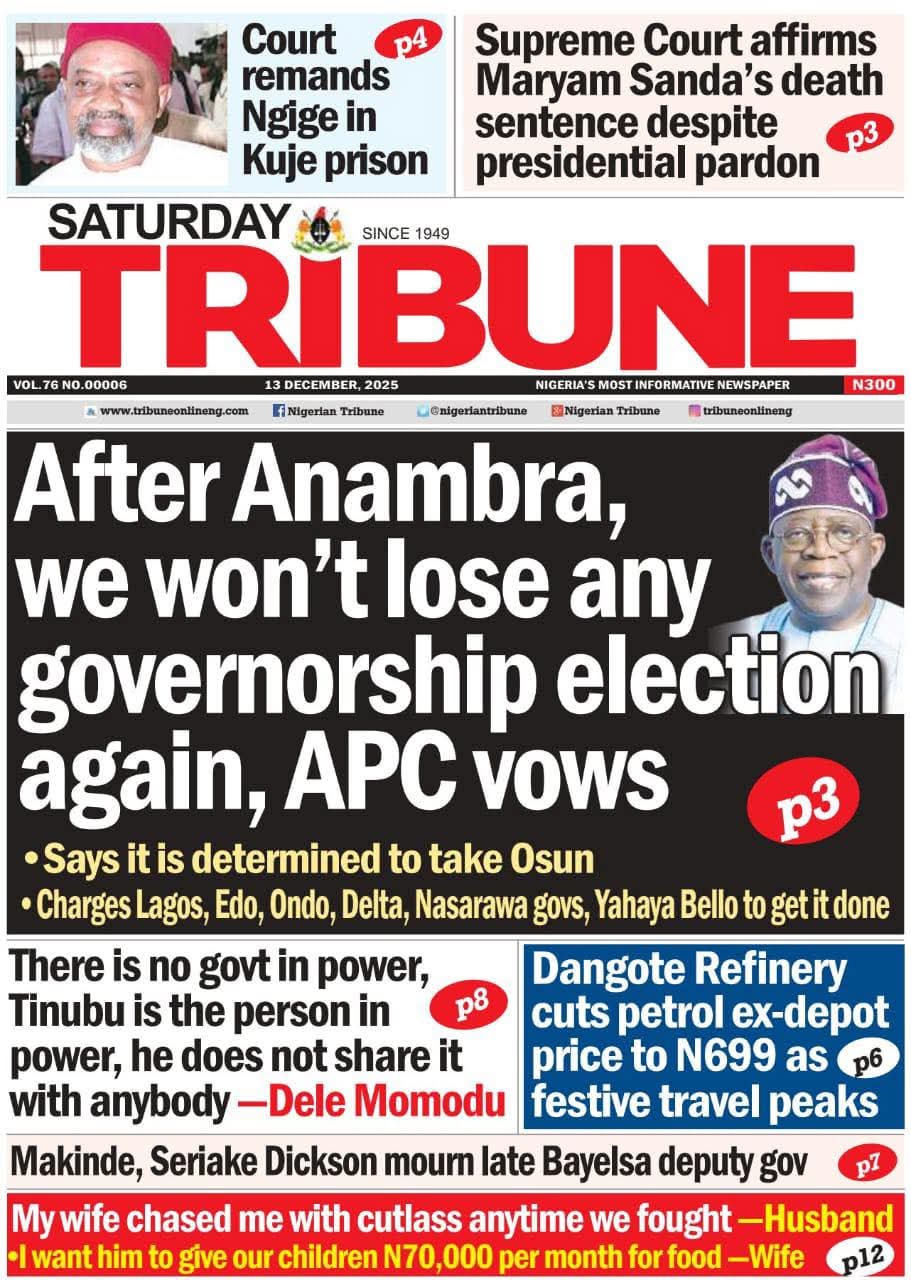 Reports on the judgment of the supreme court that affirmed the death sentence of Maryam Sanda over the murder of her husband dominate the cover pages of Nigerian newspapers.