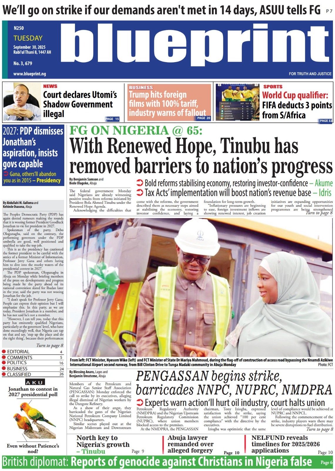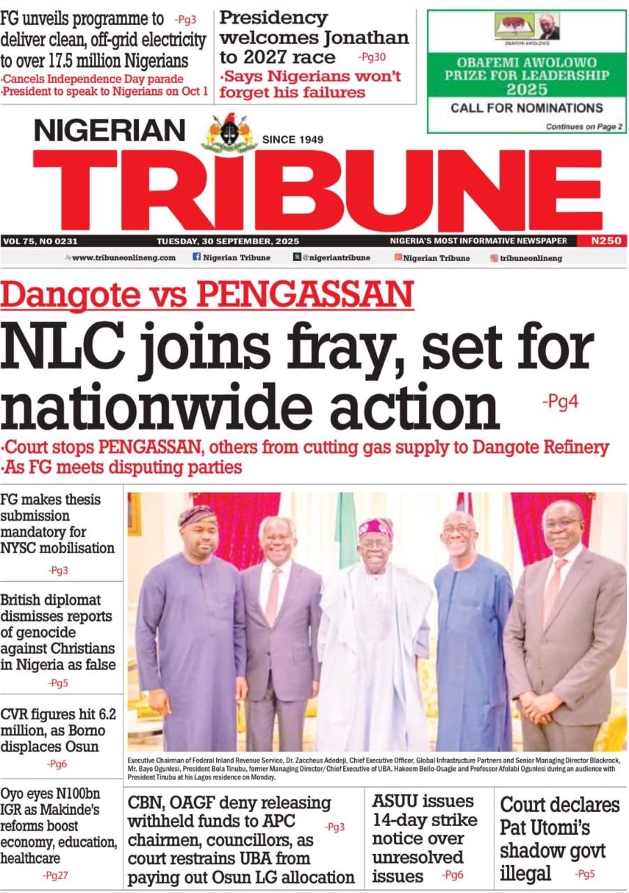 The Nigeria Labour Congress’ (NLC) directive to its members to immediately mobilise, over the lingering dispute between the Dangote refinery and PENGASSAN, pervades the dailies.
