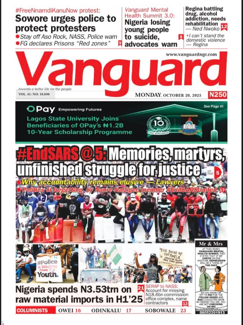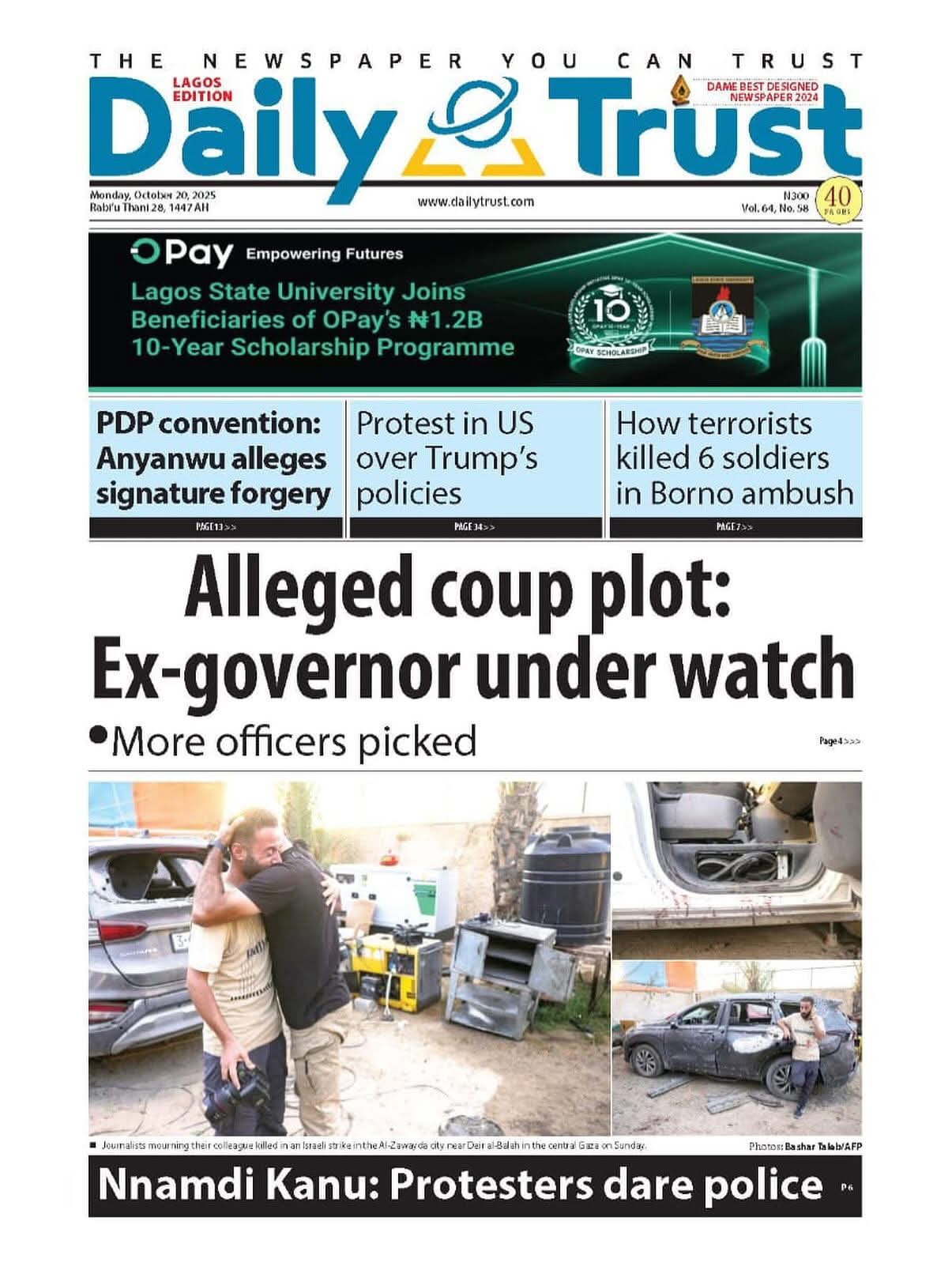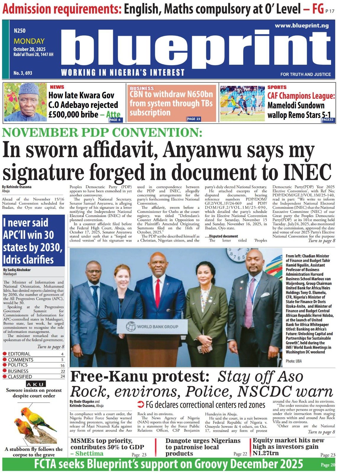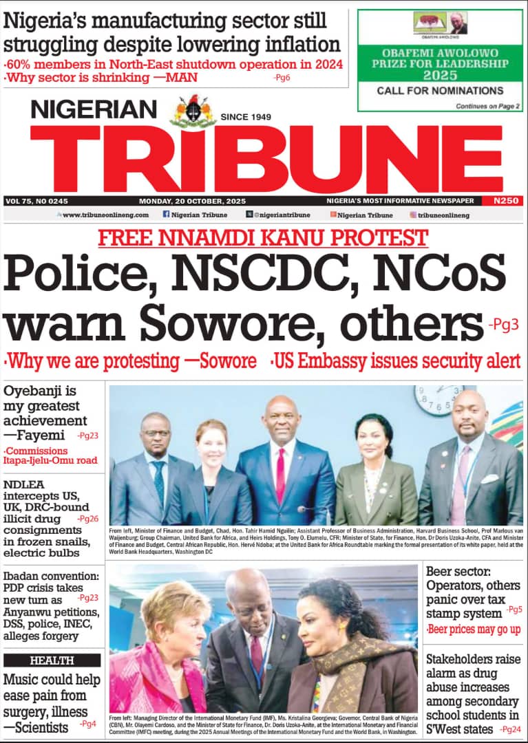 Reports of a nationwide protest scheduled for today over the release of Nnamdi Kanu, leader of the proscribed Indigenous People of Biafra (IPOB), dominate the headlines.