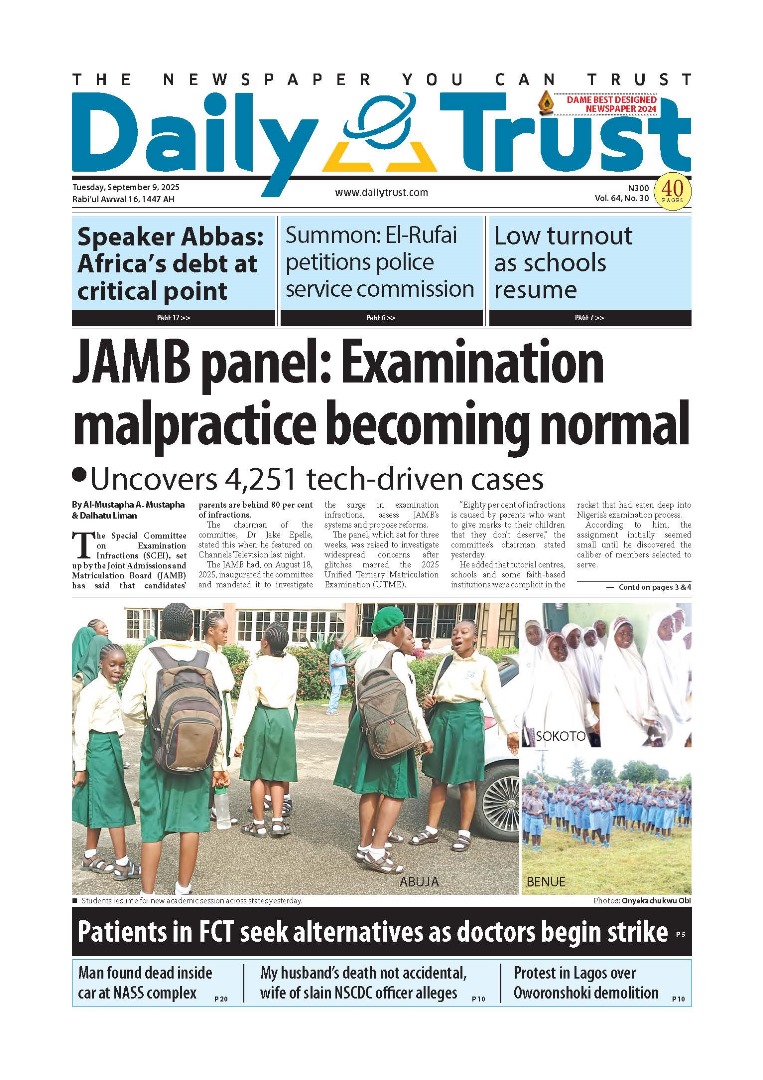 Reports that a special panel of the Joint Admissions and Matriculation Board (JAMB), has exposed a new wave of technology-driven exam malpractice, dominate the cover pages of today’s newspapers.