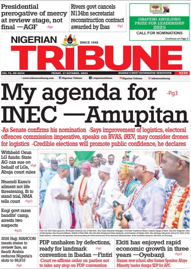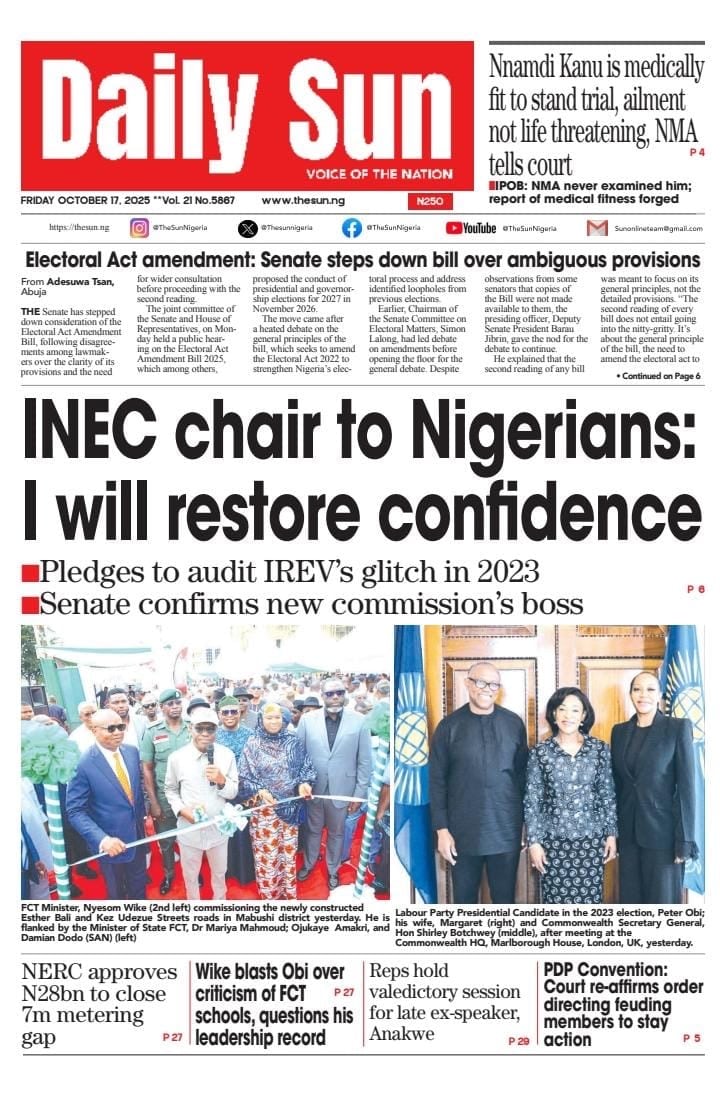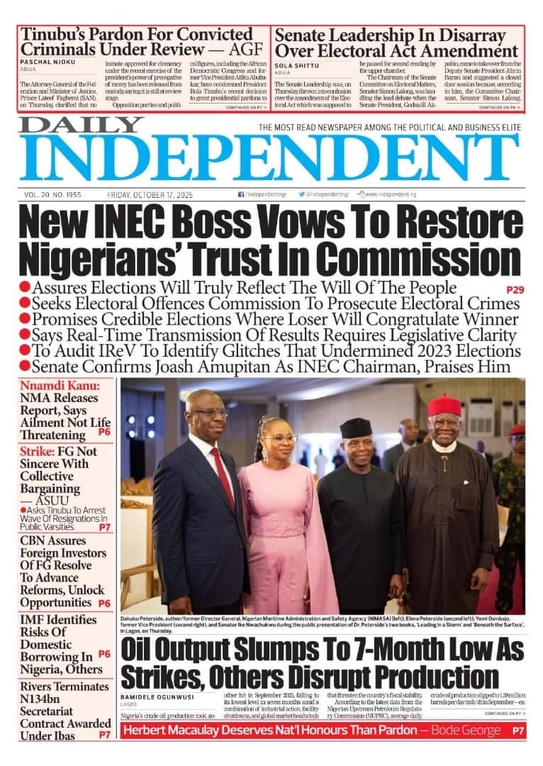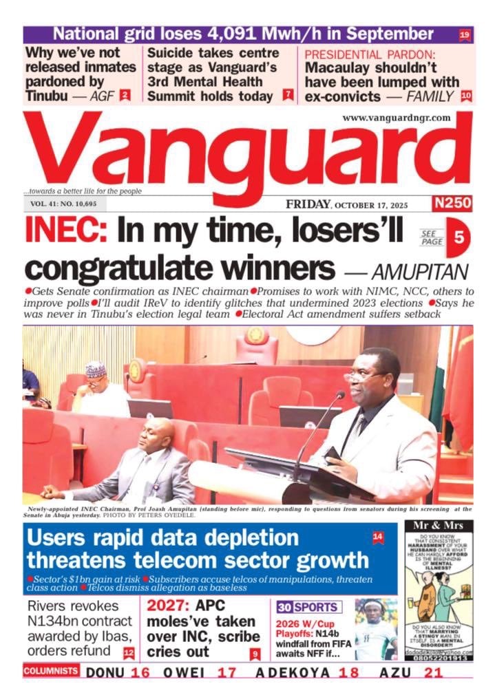 Reports from the senate screening of Joash Amupitan as chairman of the Independent National Electoral Commission (INEC) dominate the headlines.