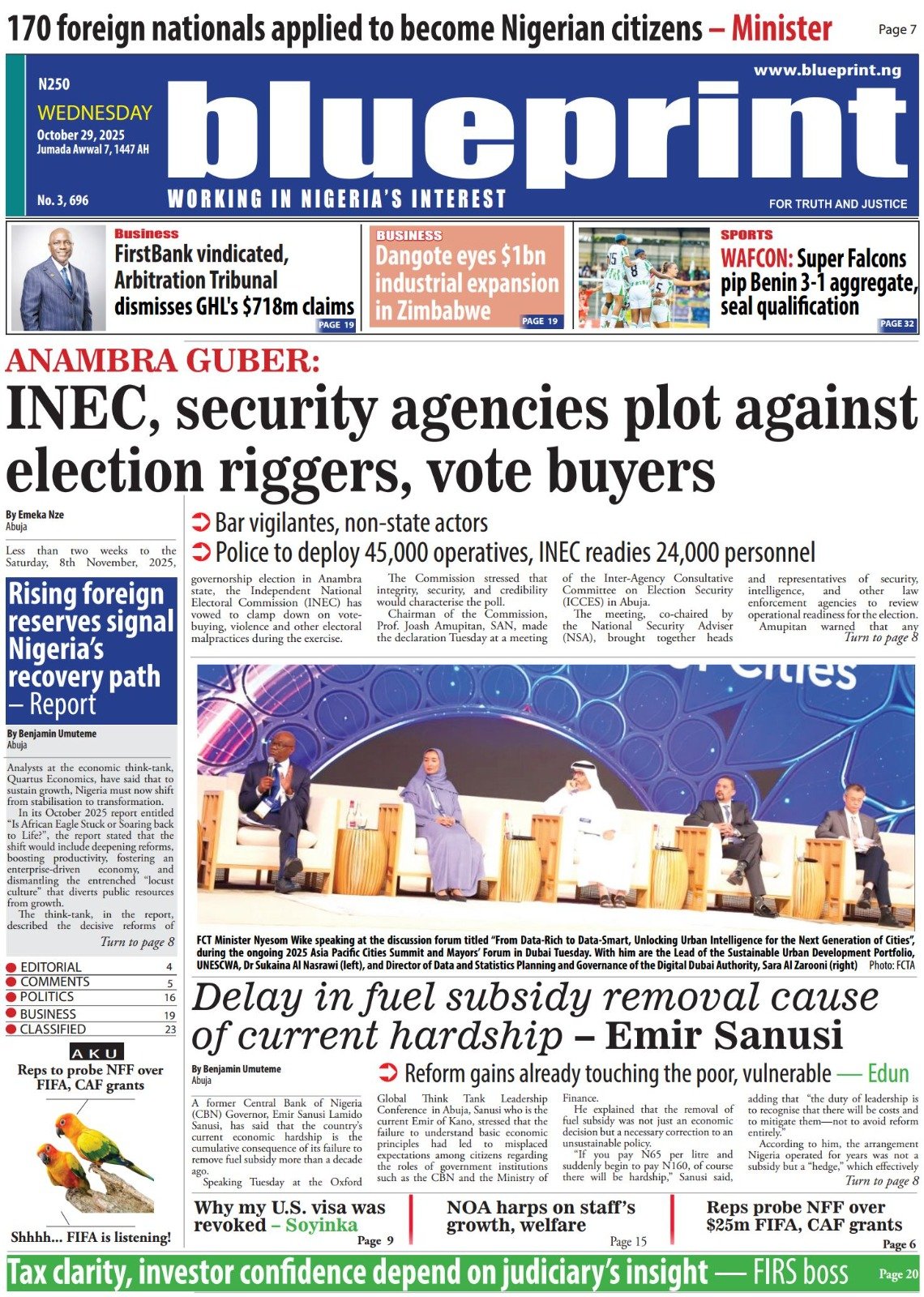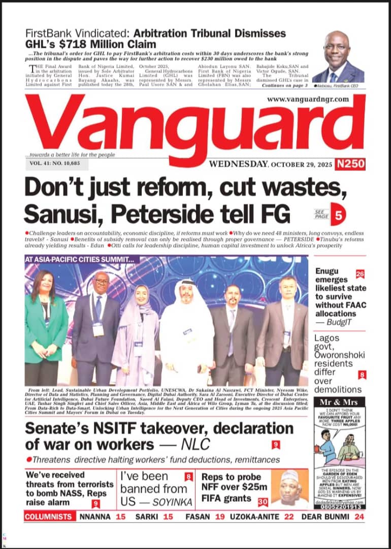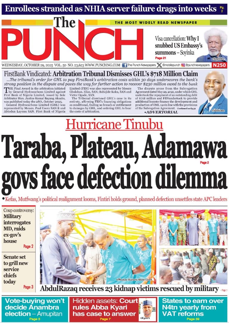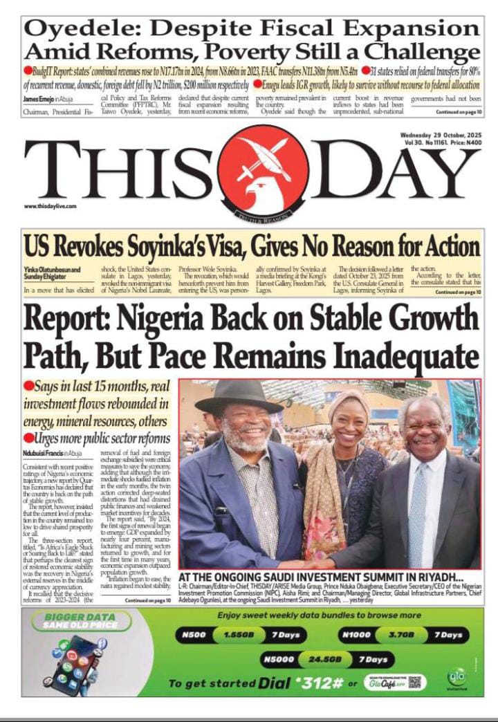 Reports on the US government’s revocation of the non-immigrant visa of Nobel laureate Wole Soyinka dominate today’s frontpages.