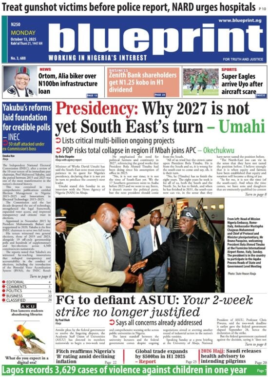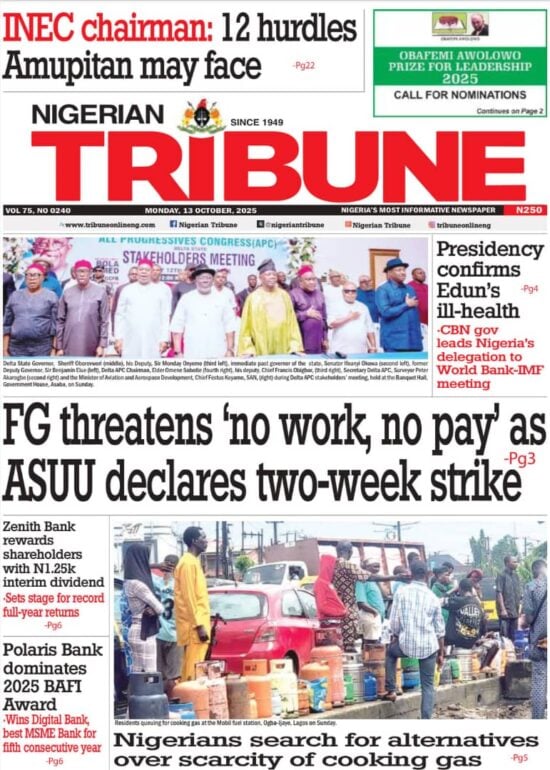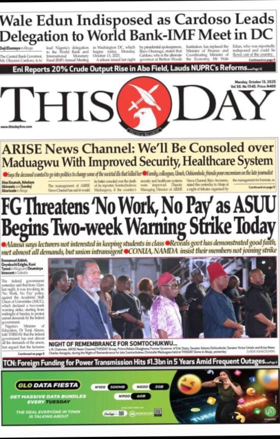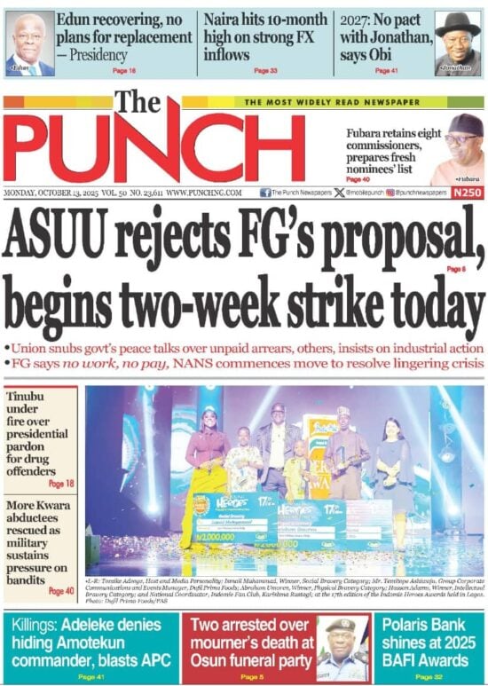 Reports on the Academic Staff Union of Universities (ASUU) strike and the illness of Wale Edun, minister of finance and coordinating minister of the economy, feature prominently in today’s dailies.