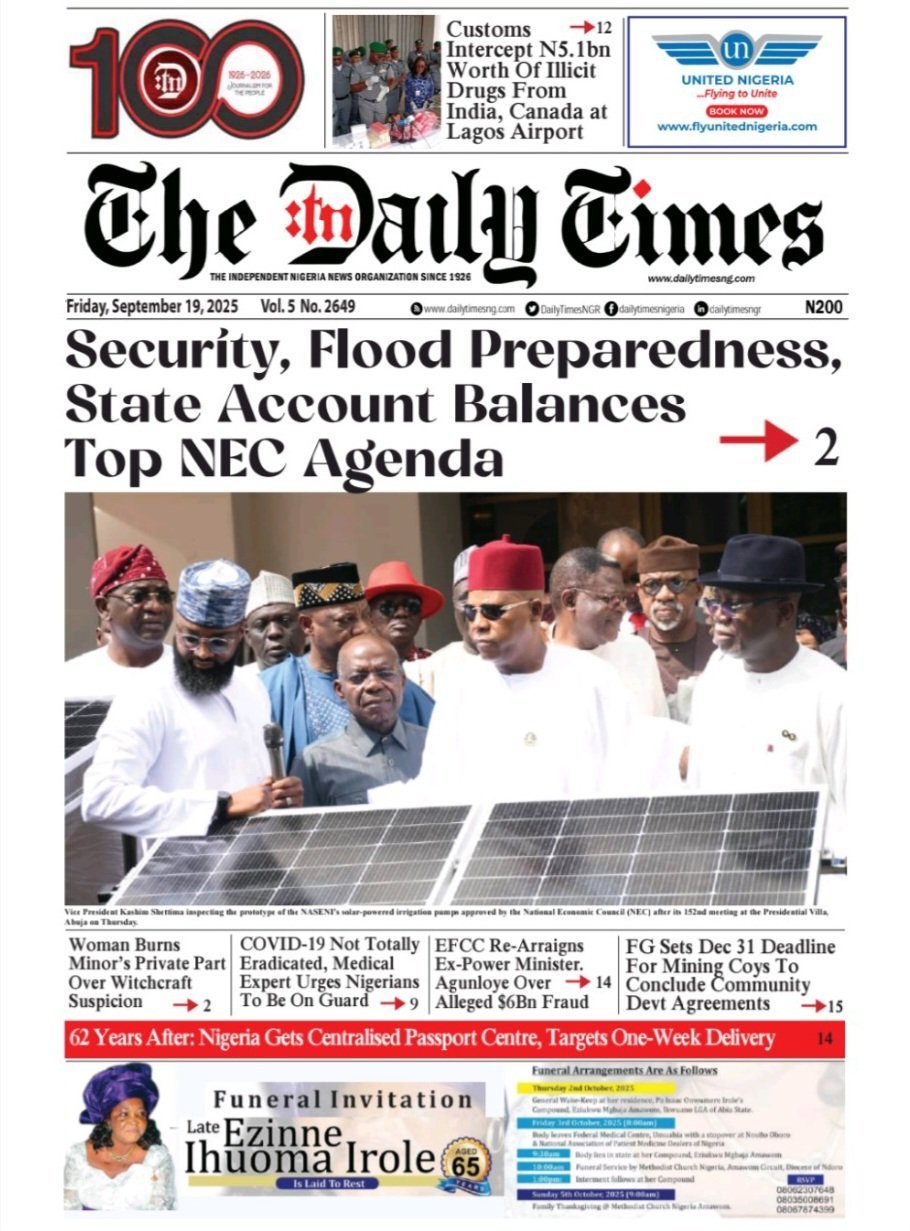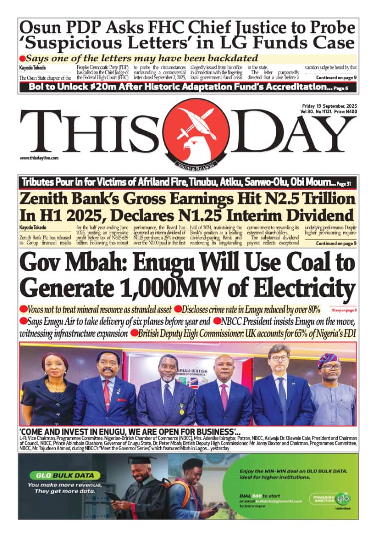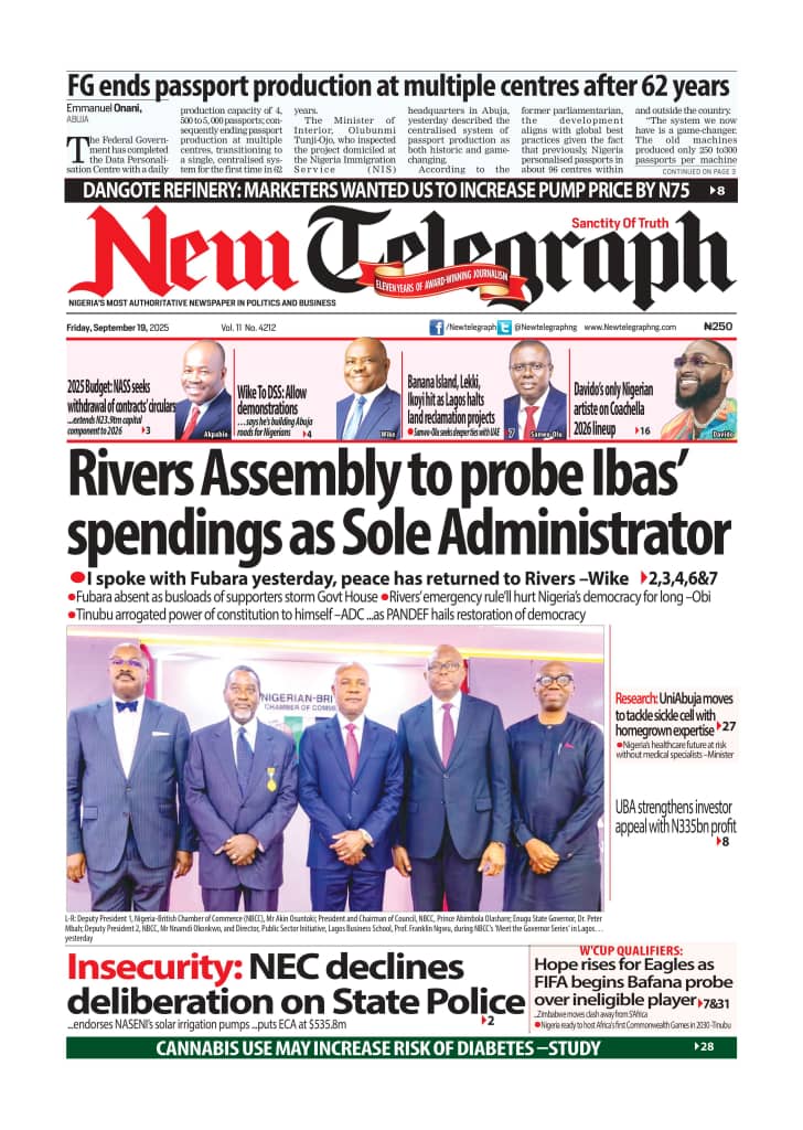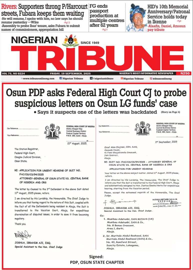 The Osun local government crisis and the return of democratic governance in Rivers dominate the cover pages of today’s newspapers.
