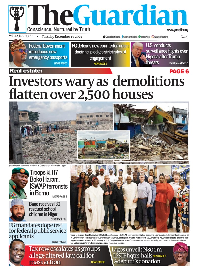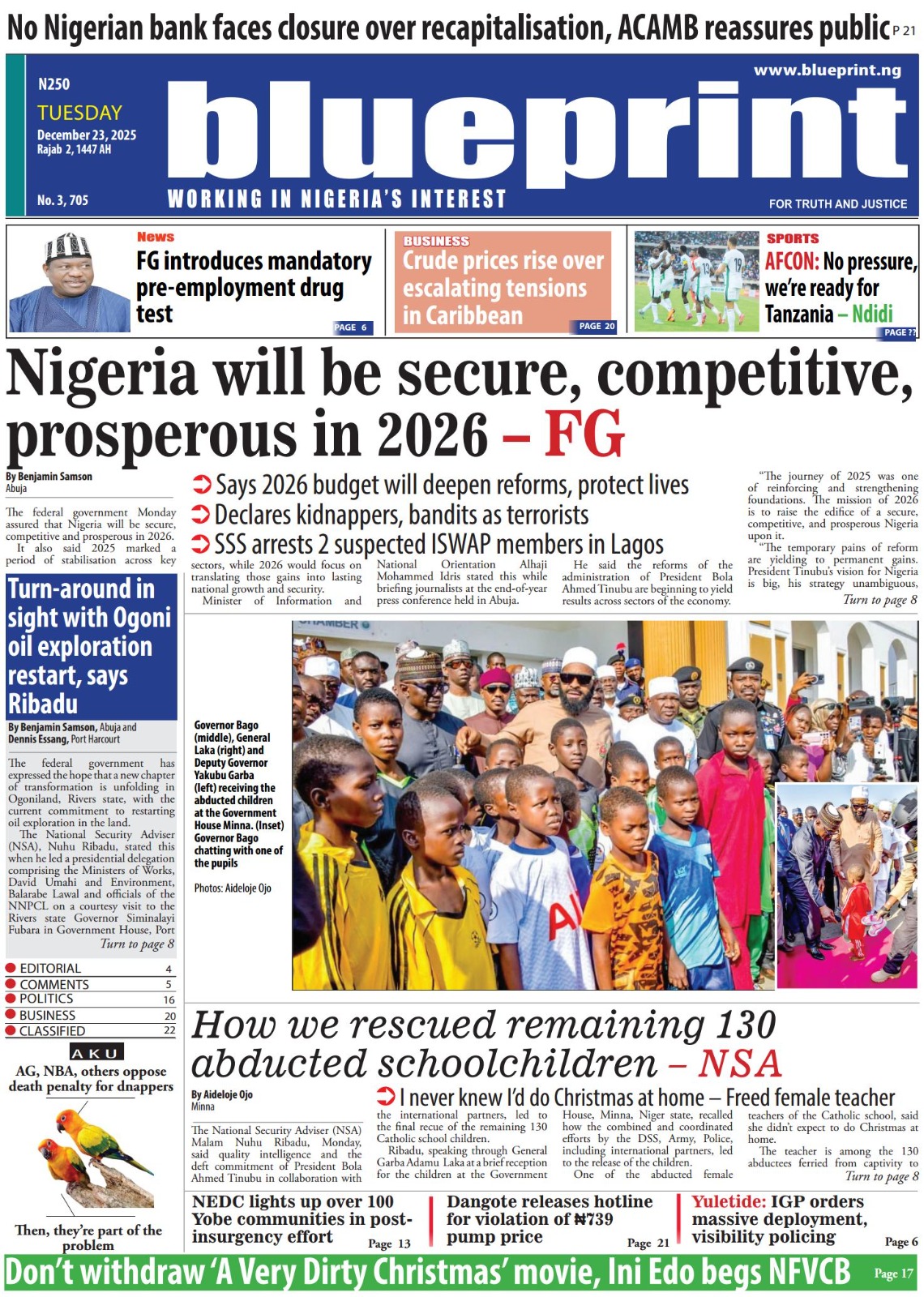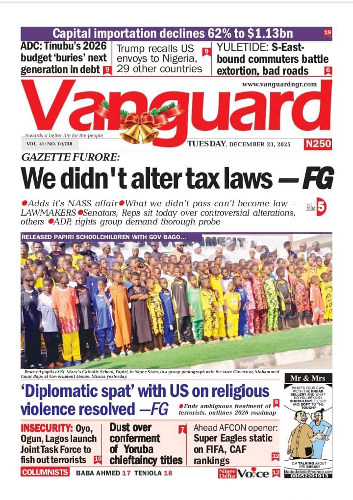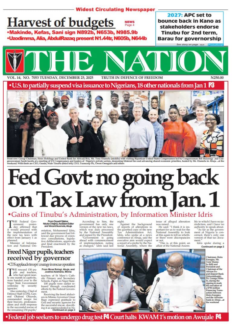 Reports on security enhancement across the country ahead of the yuletide season, and developments surrounding the new tax laws, dominate today’s frontpages.