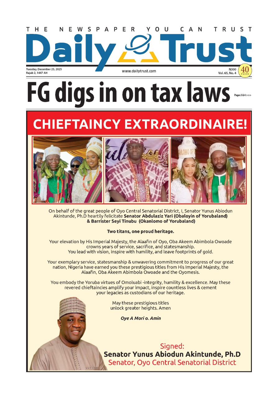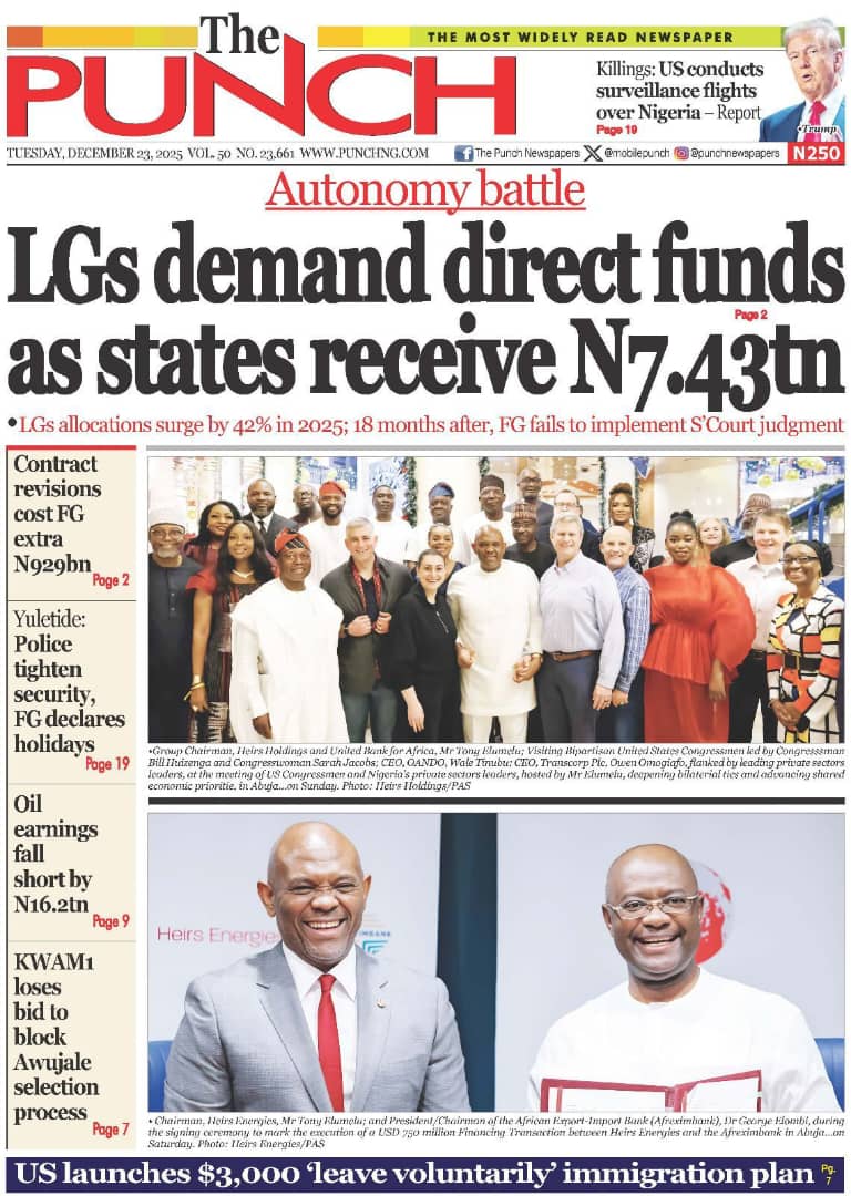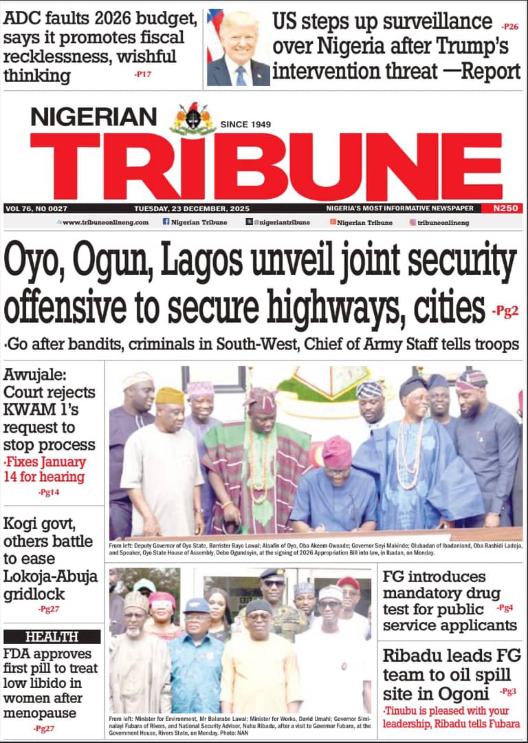 Reports on security enhancement across the country ahead of the yuletide season, and developments surrounding the new tax laws, dominate today’s frontpages.