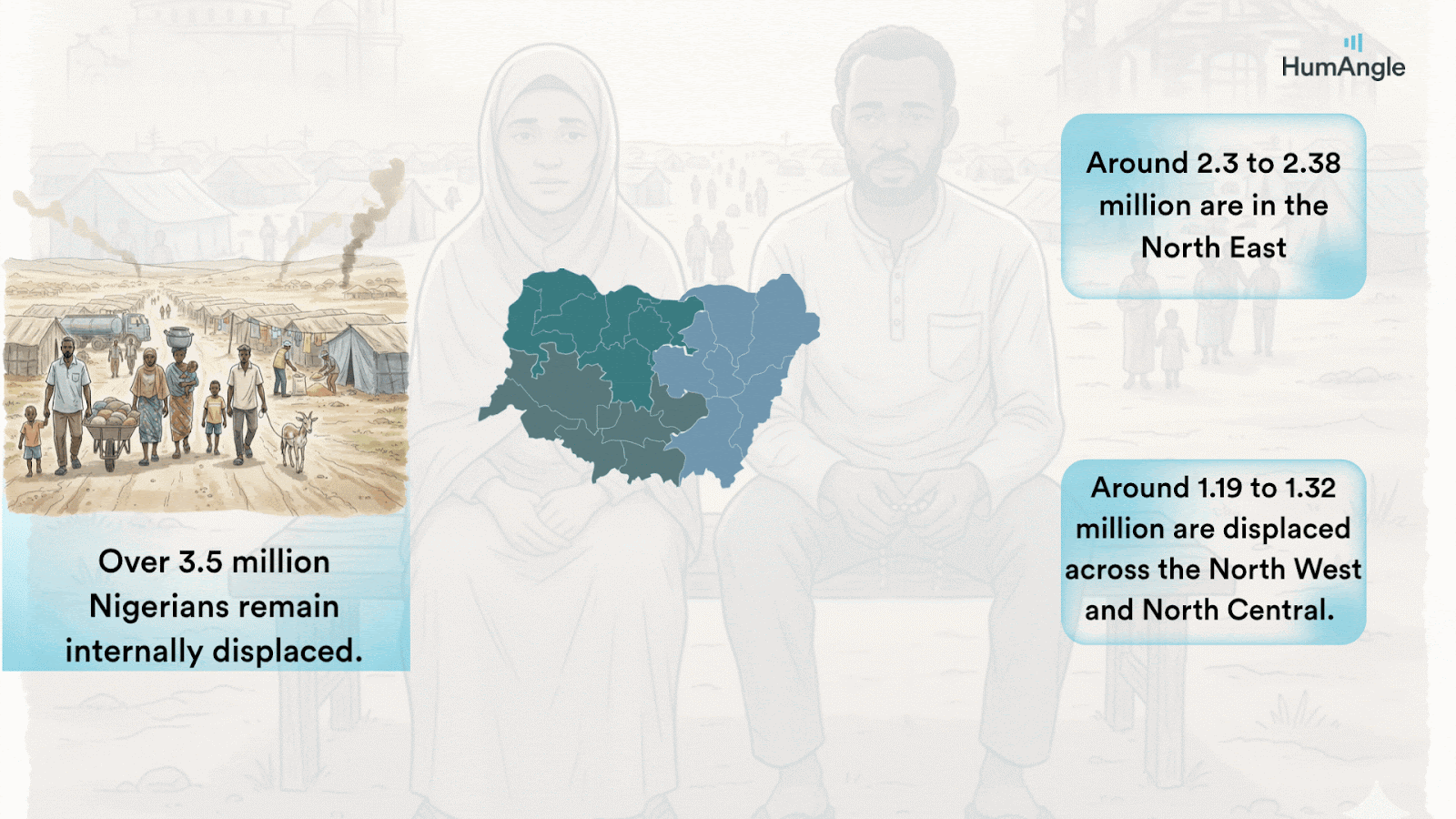As of early 2025, the International Organisation for Migration (IOM) reported that over 3.5 million Nigerians remain internally displaced. Around 2.3 to 2.38 million are in the north-east, while between 1.19 to 1.32 million are displaced across the north-west and north-central.