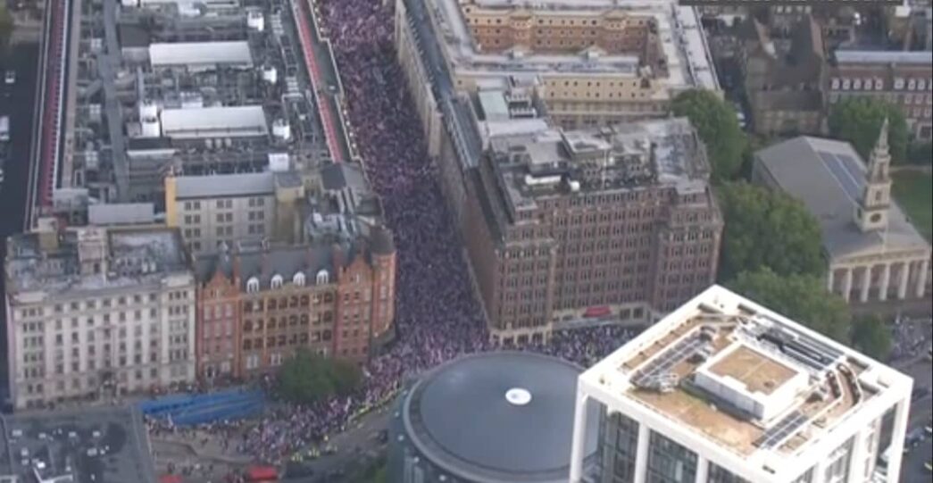 The BBC reports that the demonstration, billed as the ‘Unite the Kingdom’ march, saw crowds gather south of the River Thames before heading towards Westminster.