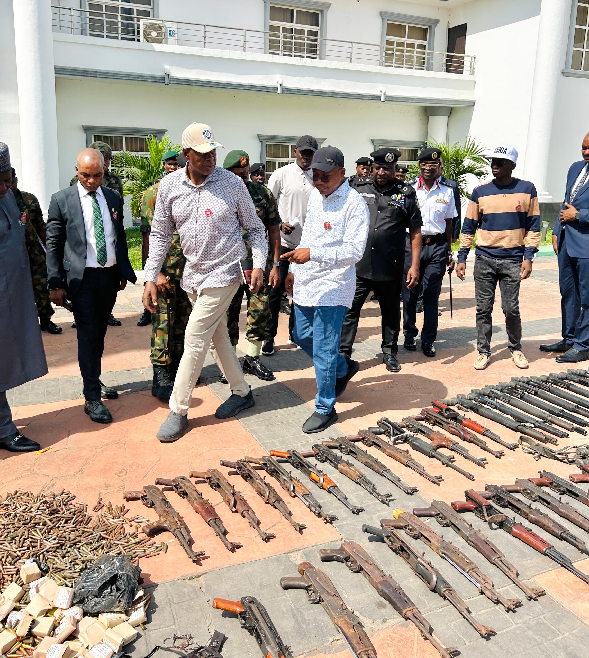 According to the governor, items recovered during the operation include 24 AK-47 rifles, 23 pump-action rifles, one Tavor rifle, one FN rifle, four Barrett pistols, four Browning rifles, 42 magazines and 520 rounds of GPMG 7.62 ammunition,