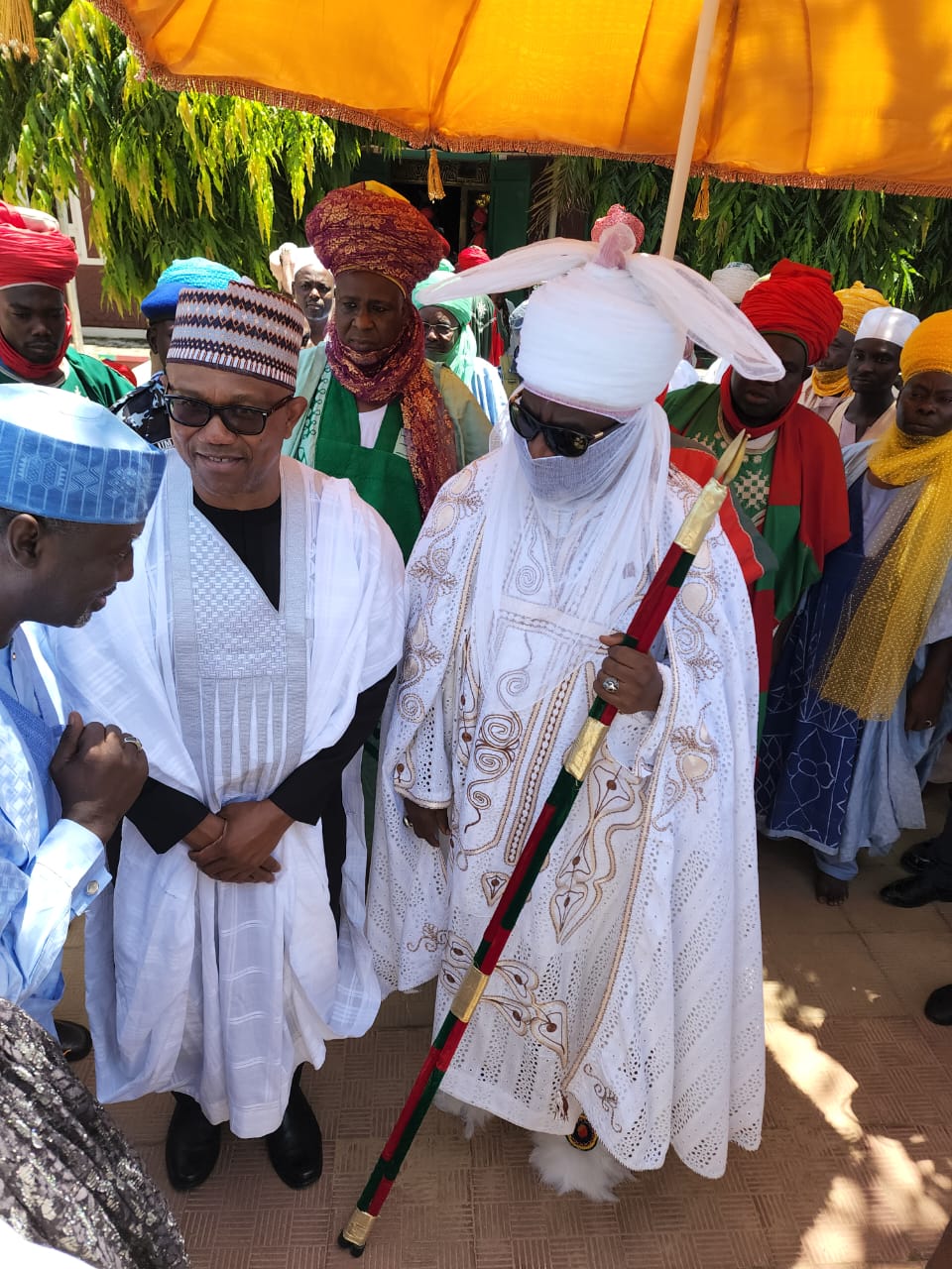 Peter Obi, presidential candidate of the Labour Party (LP), and Yusuf Baba-Ahmed, vice-presidential candidate of the party, visited Aminu Ado Bayero, the Emir of Kano, on Saturday.