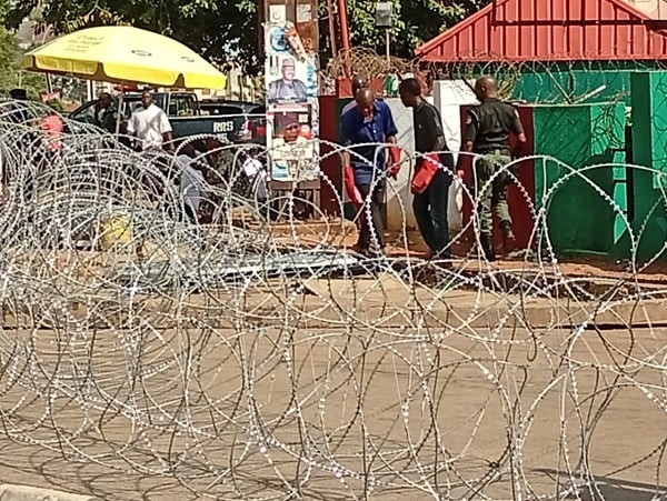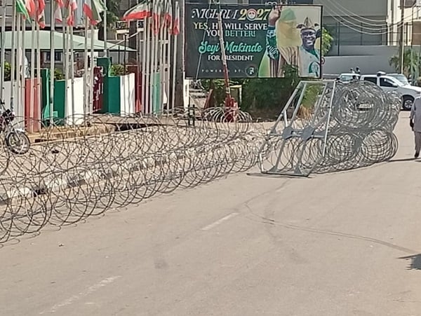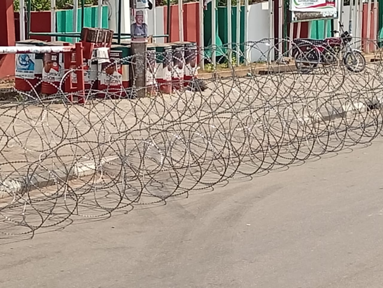 Videos on Wednesday showed barbed wire stretched across the main entrance to stop movement in and out of Wadata Plaza.