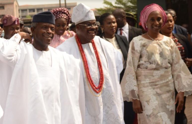 Yemi Osinbajo, Vice-President; Bola Tinubu, a national leader of the All Progressives Congres (APC); Aisha Buhari, wife of the President, were some of the bigwigs present at the reception which took place at Agodi Gardens, Ibadan.