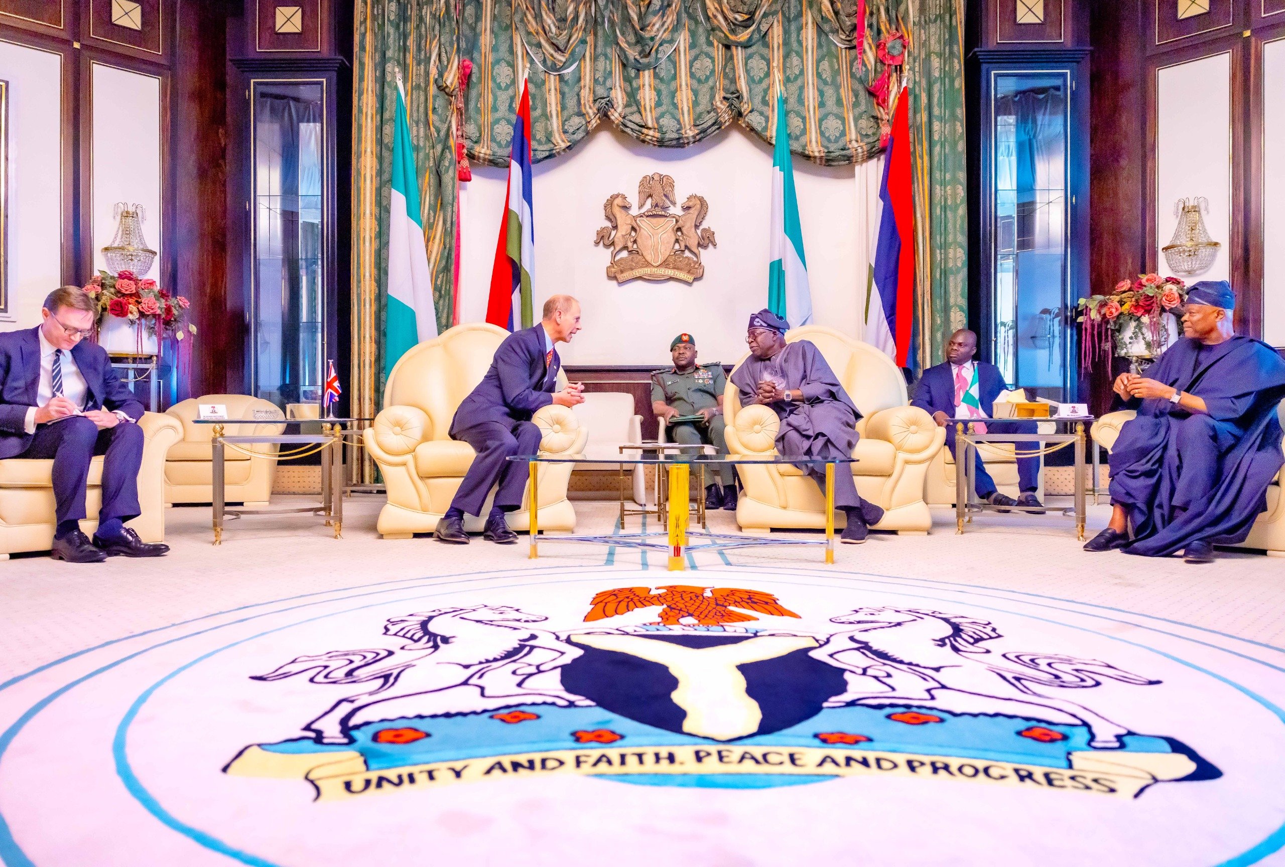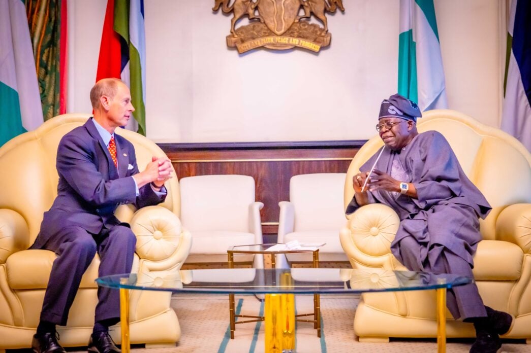 President Bola Tinubu on Monday received Prince Edward, the Duke of Edinburgh, at the Presidential Villa in Abuja.
