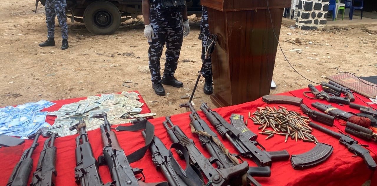 “Recovered from the camp were two AK-47 rifles, two pump-action guns, 375 rounds of ammunition, IPOB/ESN flags, and charms.