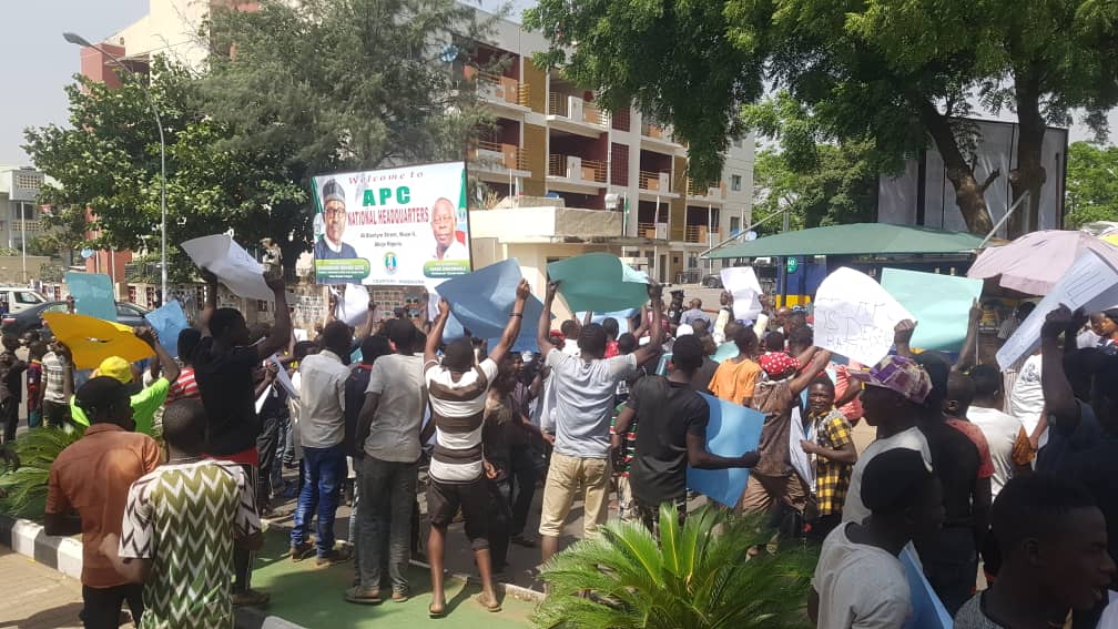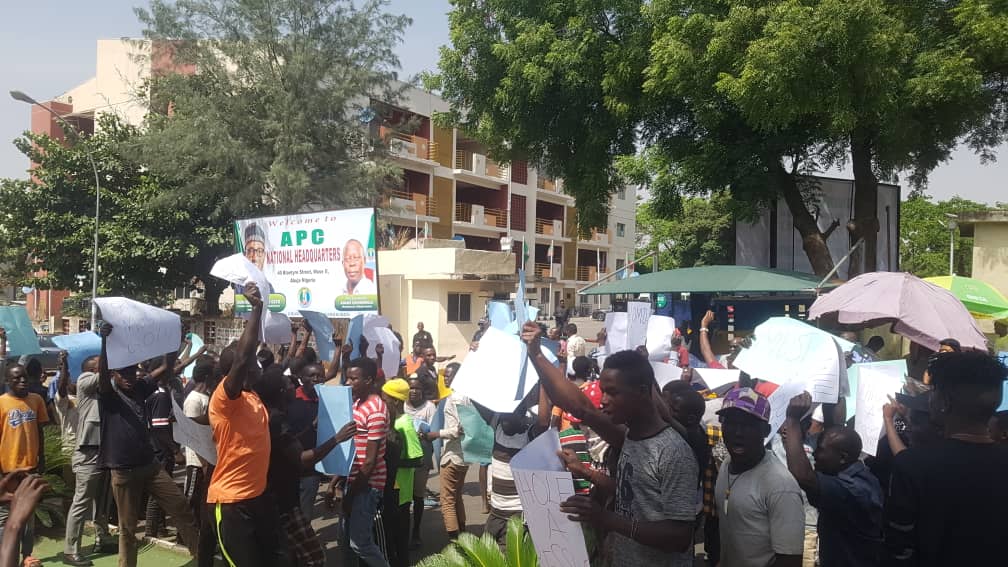 Some protesters stormed the national secretariat of the All Progressives Congress (APC) in Abuja on Monday, demanding the removal of Adams Oshiomhole, national chairman of the party.