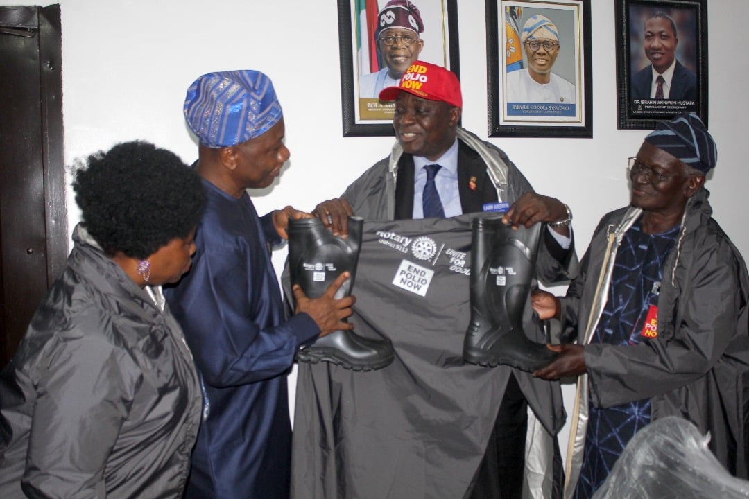 Rotary District 9112 has donated 100 pairs of rain boots and 200 raincoats to the Lagos Primary Healthcare Board (LSPHCB) to support health workers in the ‘End Polio Now’ campaign.
