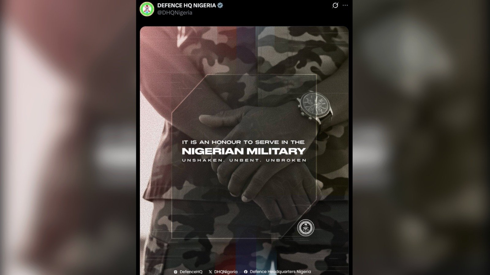 In a flyer published on X on Tuesday, the DHQ said it is an honour to serve in the Nigerian military.