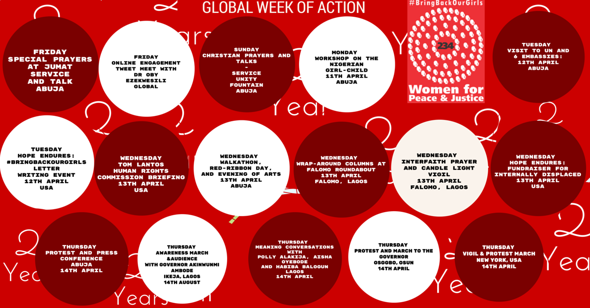 “We are also using this opportunity to cry out once again to our authorities: ‘Nigerian leaders, BringBackOurGirls Now and Alive!’”
