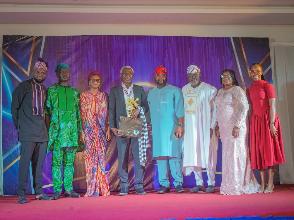 Representatives of Wikimedia with Kayode Akintemi, News Central’s managing director (centre), receiving the award in Lagos
